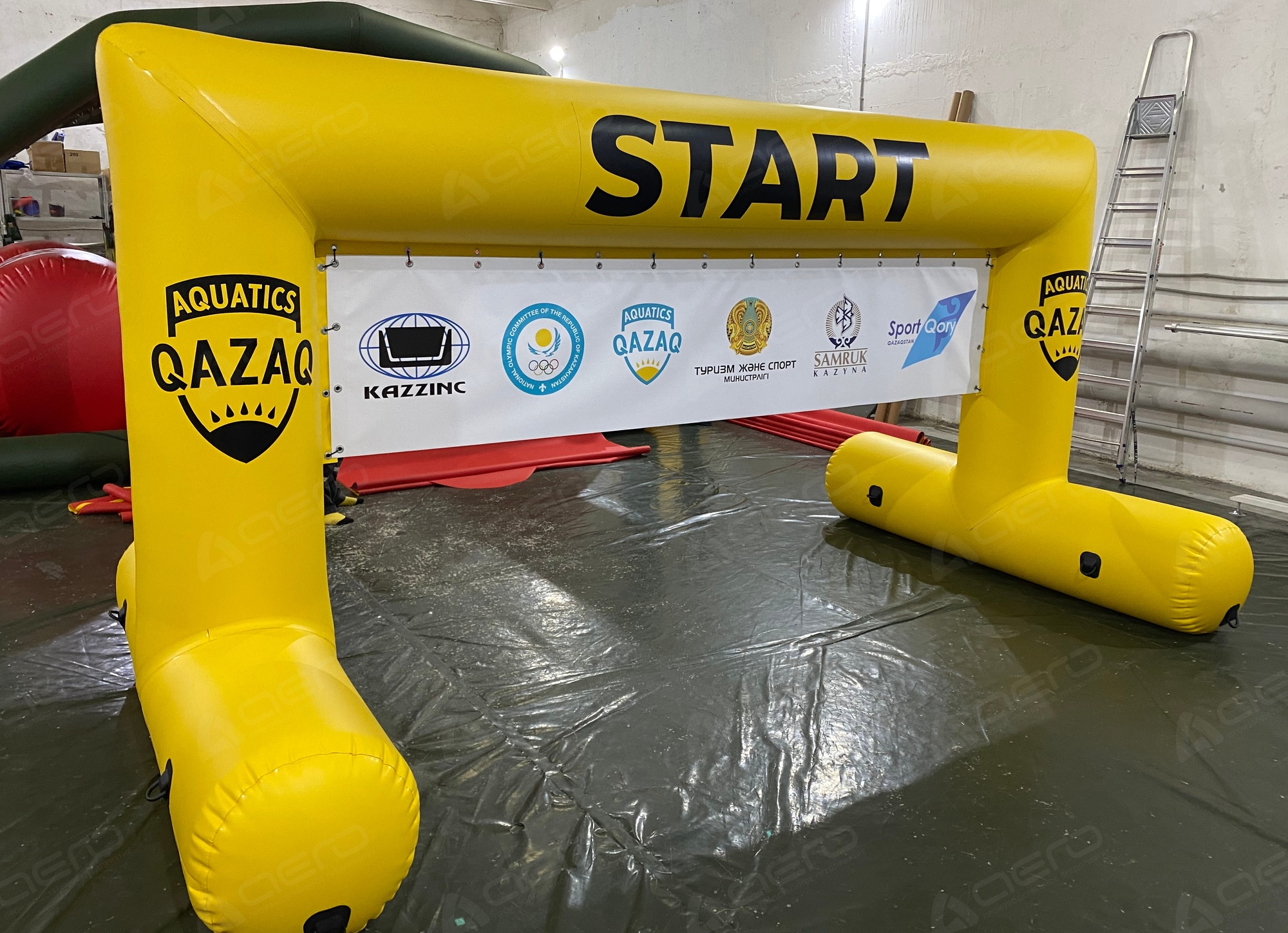Надувная арка имеет прочную конструкцию, обеспечивающую устойчивость на воде, а благодаря яркому цвету, она хорошо видна издалека, что делает ее заметной и безопасной для участников мероприятий.