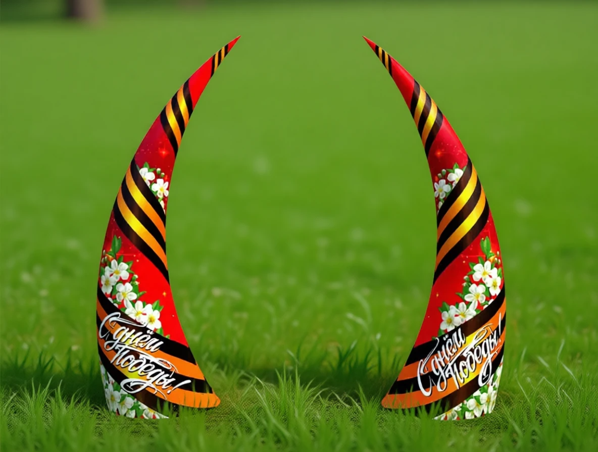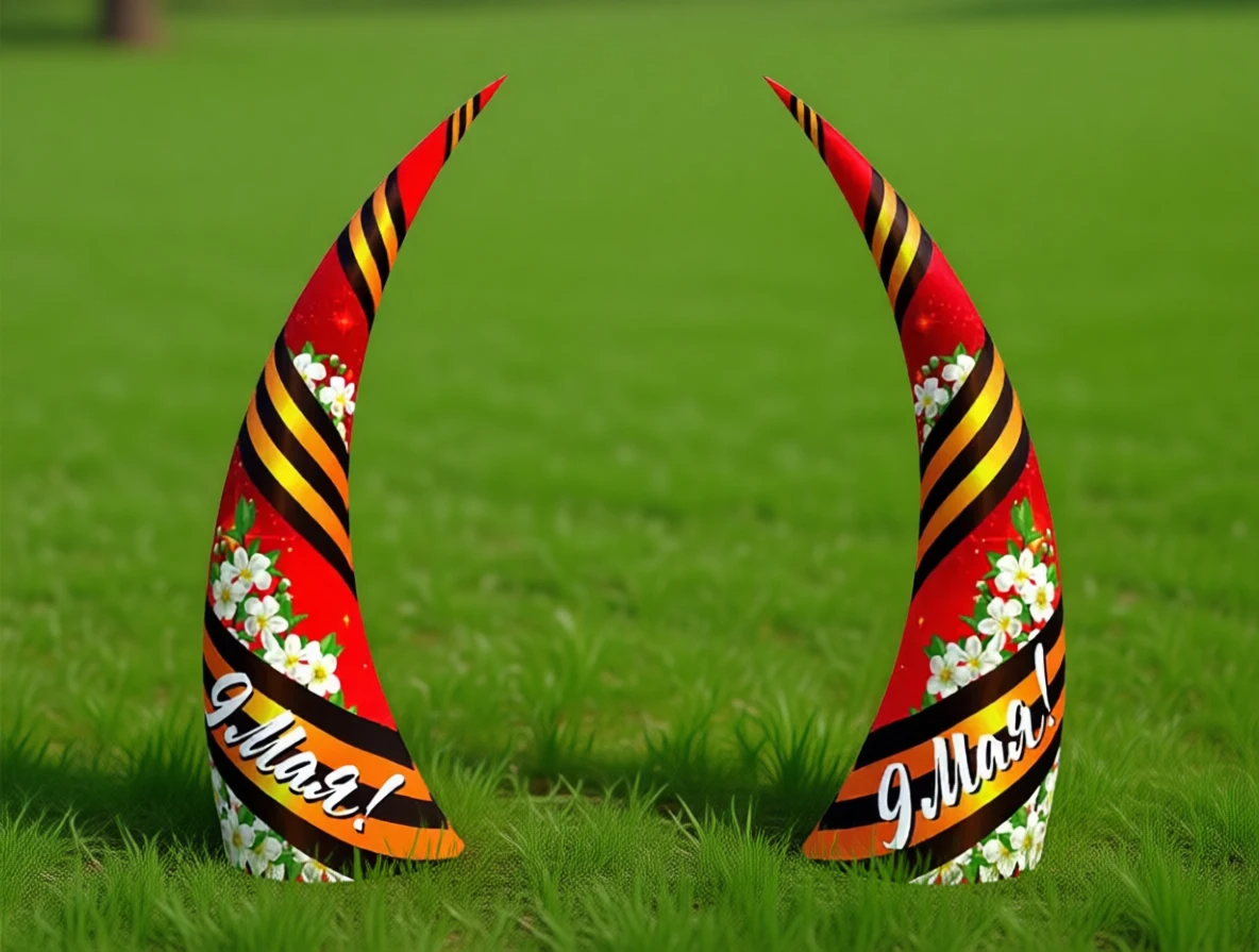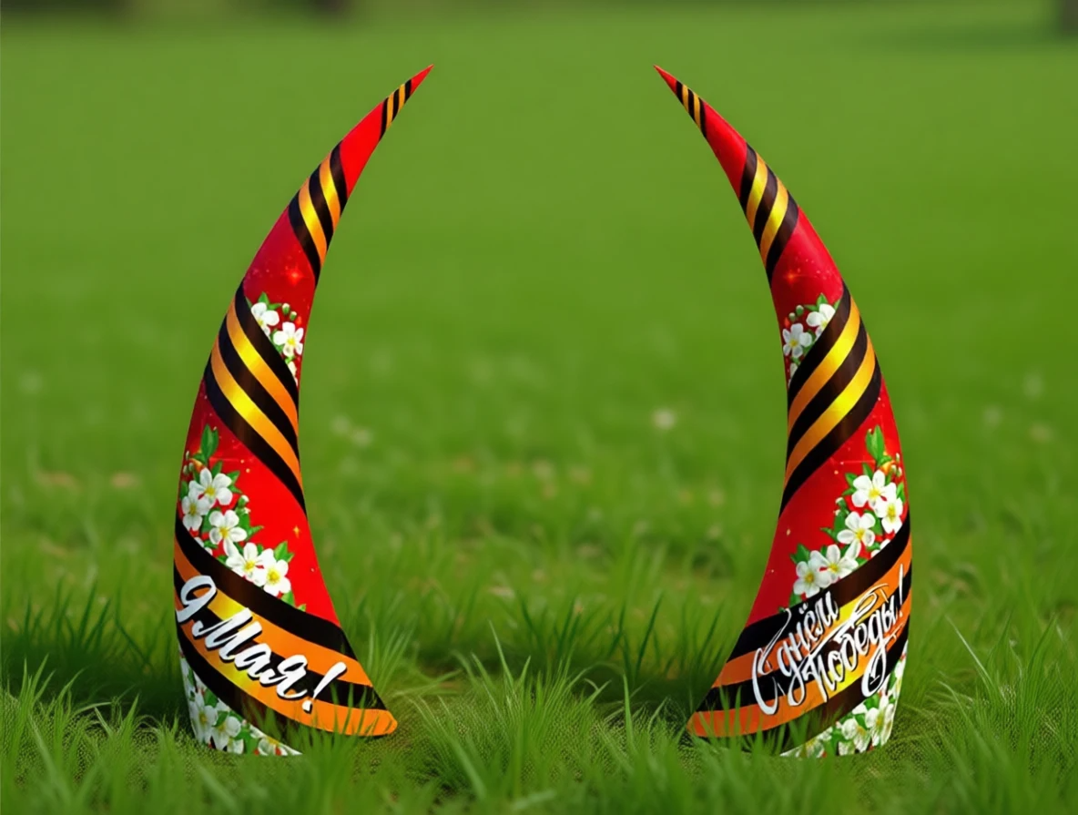 Яркие надувные тематические конусы, посвящённые Дню Победы, идеально подходят для оформления парков, скверов и других общественных территорий, создавая праздничное настроение.