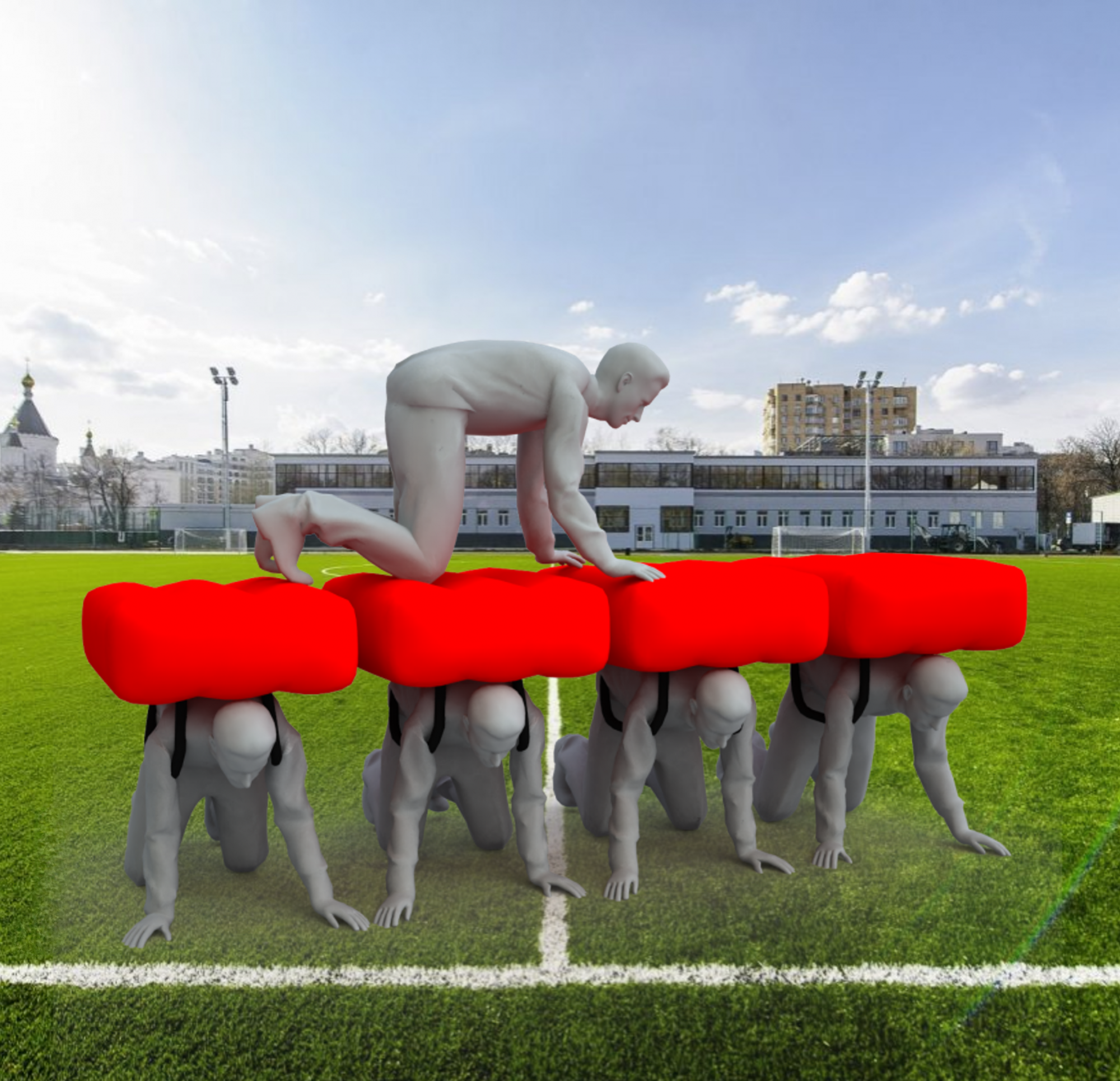 Суть игры: команда из 5 человек должна как можно быстрее преодолеть заданную дистанцию. Четыре участника становятся "живыми опорами" моста, а пятый — "десантом", который должен проползти по их спинам от начала до конца. Длина дистанции регулируется, что позволяет адаптировать игру под любое пространство и уровень подготовки группы.