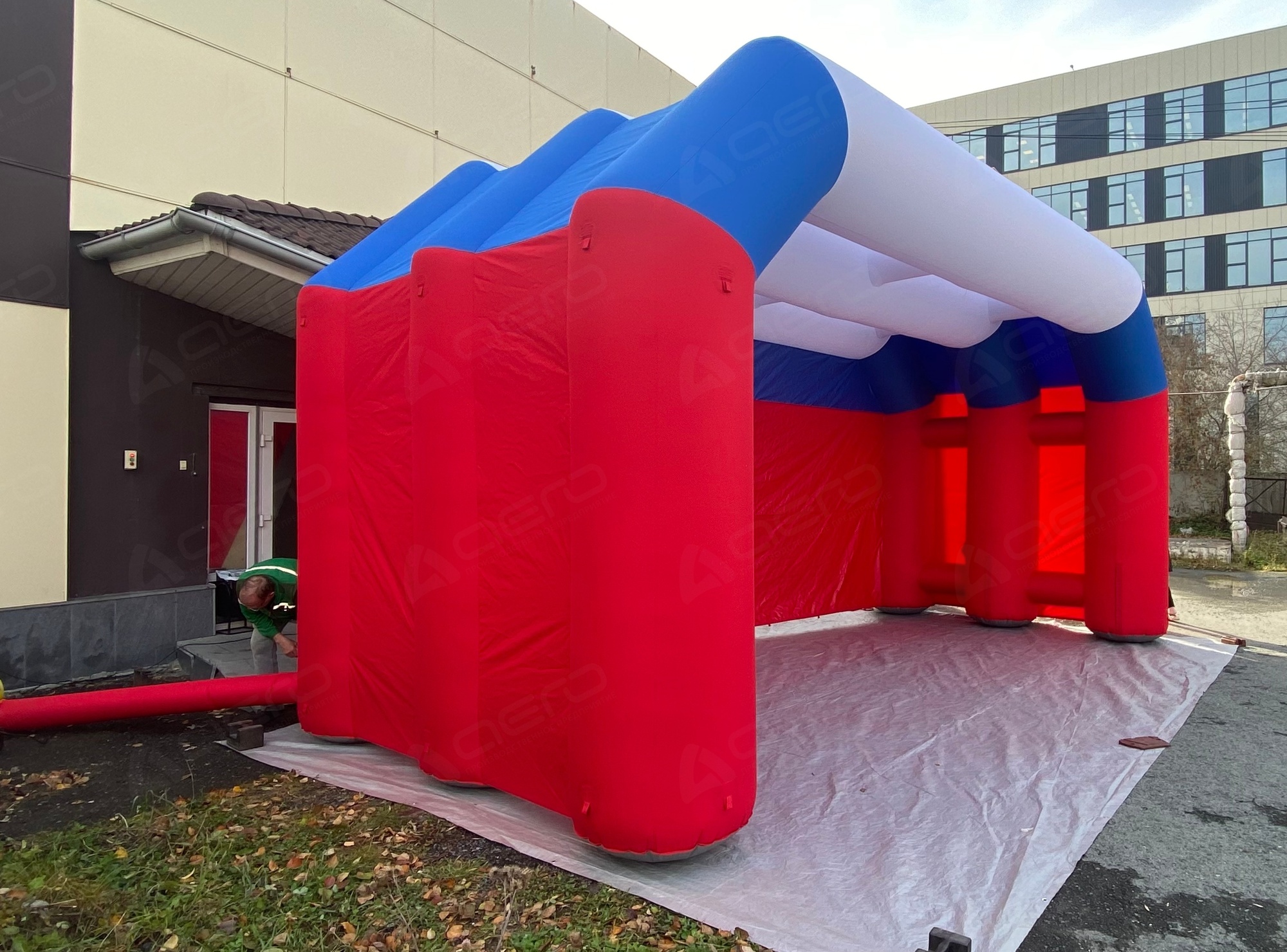 Надувная сцена собрана швейным способом. Материал имеет водоотталкивающее полиуретановое покрытие (PU 2000) с внутренней стороны. |