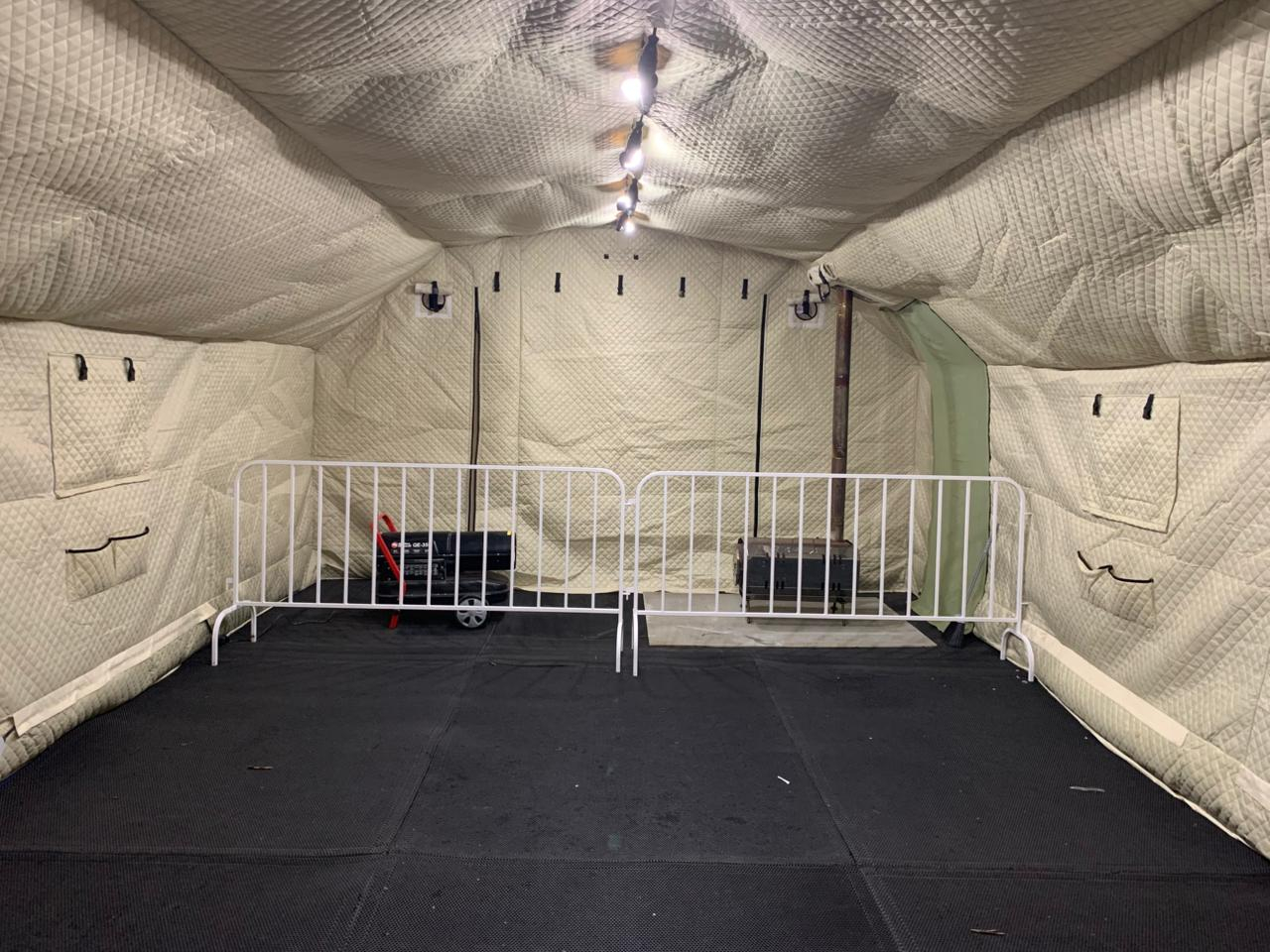 На внутреннем тенте предусмотрены крепления для кабелей электропитания в виде закрытых кабель-каналов из ткани, крепления для светодиодных светильников, а также дублирование технологических отверстий внешнего тента 1 шт.