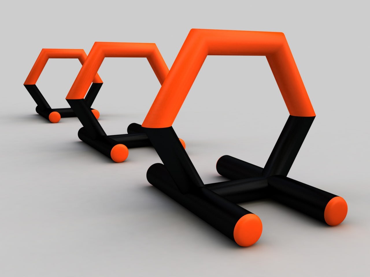 Задача: необходимо пролететь подряд несколько тоннелей под углом. Для создания карусели, потребуется как минимум три надувных тоннеля, которые ставятся на небольшом расстоянии друг от лруга.