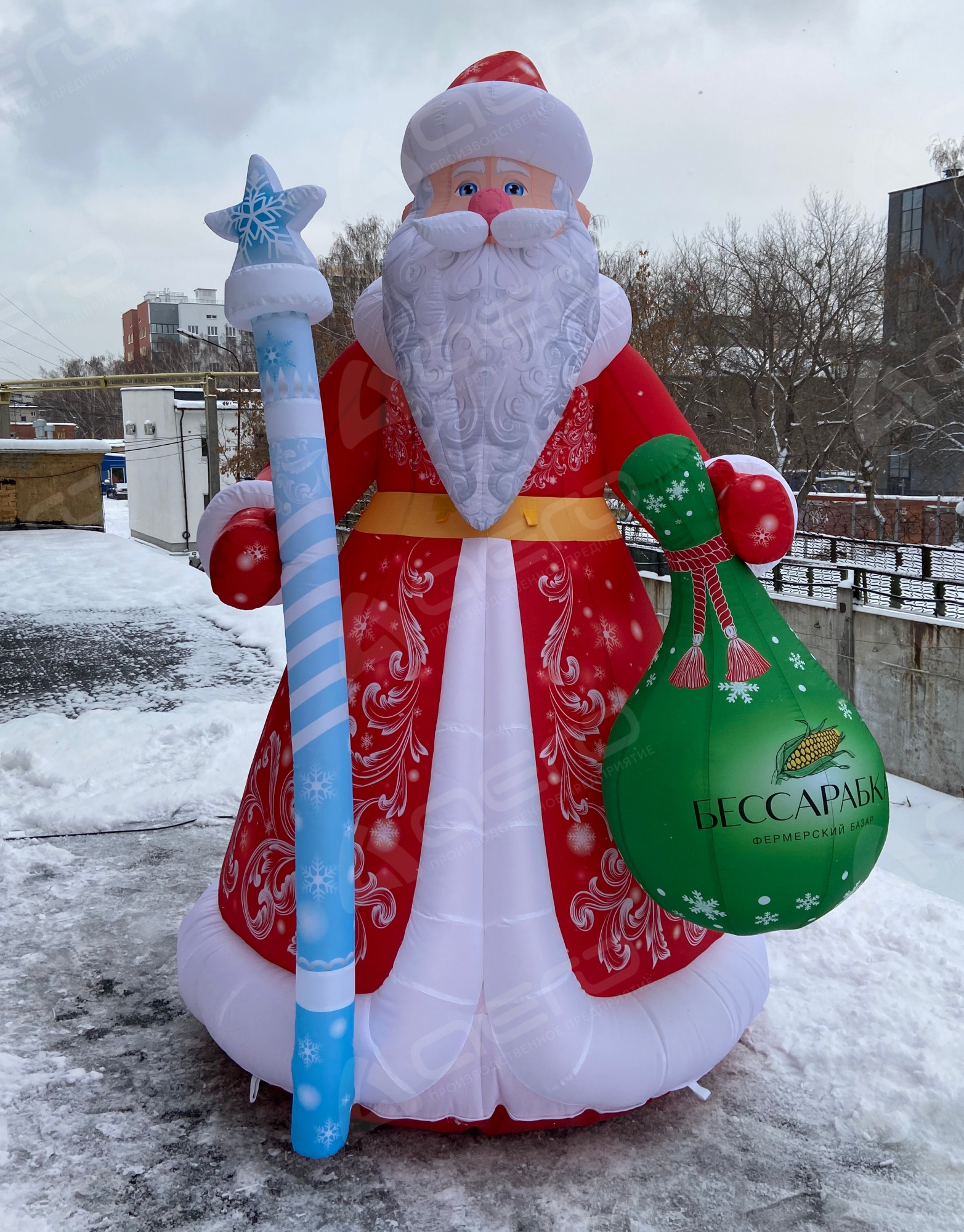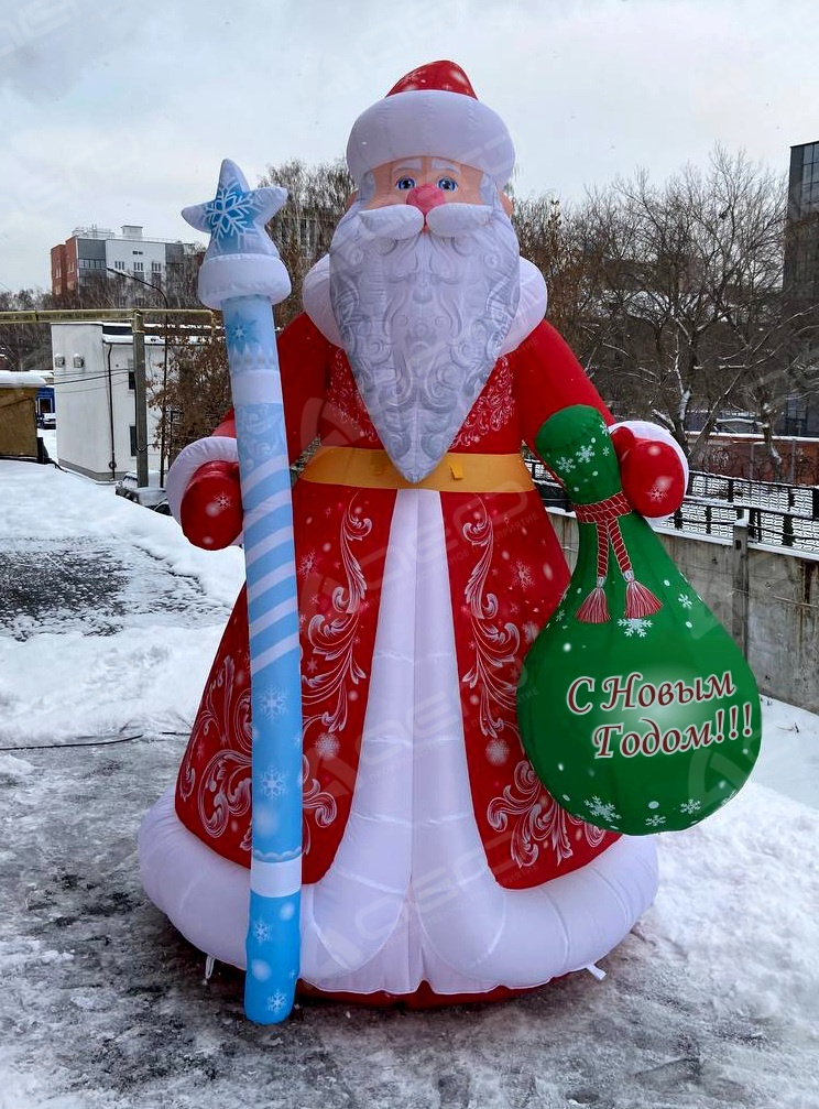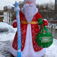 | Надувной Дед Мороз с посохом и мешком в Красной шубе |