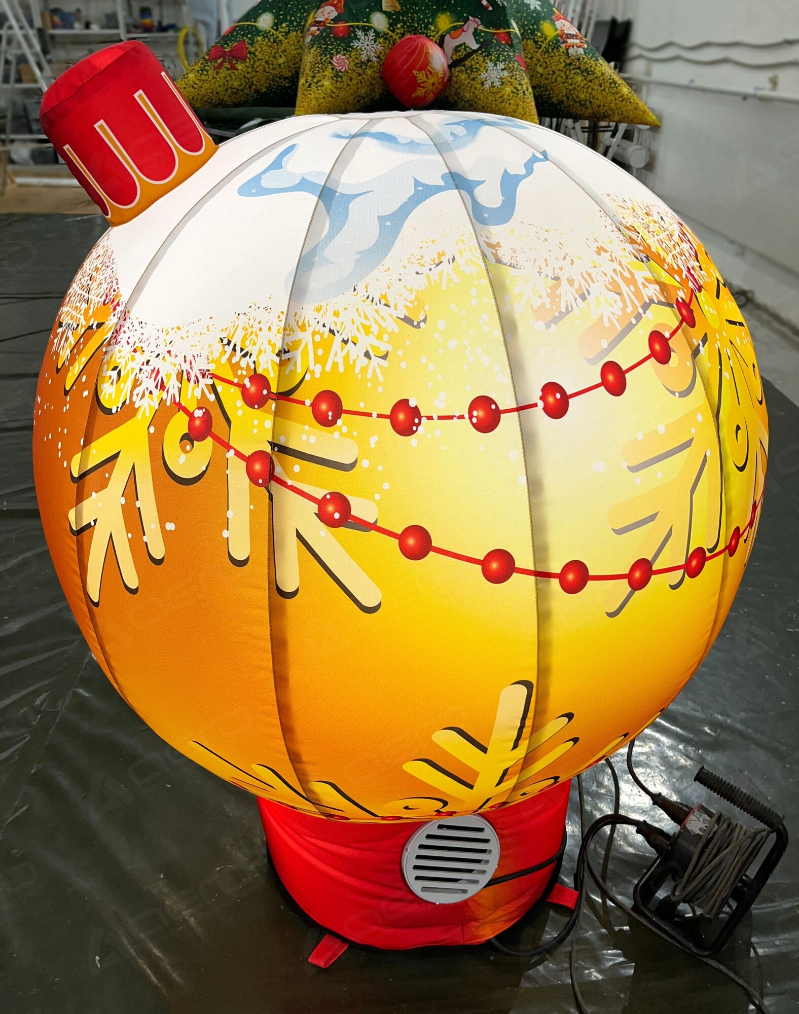 Хотите привлечь внимание к своему магазину? Украсить пространство перед Домом культуры, офисом или административным зданием? Надувная фигура в виде настоящей Ёлочной игрушки привлечет внимание детей и взрослых, создавая у людей позитивные ассоциации и желание остановиться, сделать фото и поделиться эмоциями с друзьями! Отлично будет смотреться композиция из больших надувных новогодних шаров разных размеров.