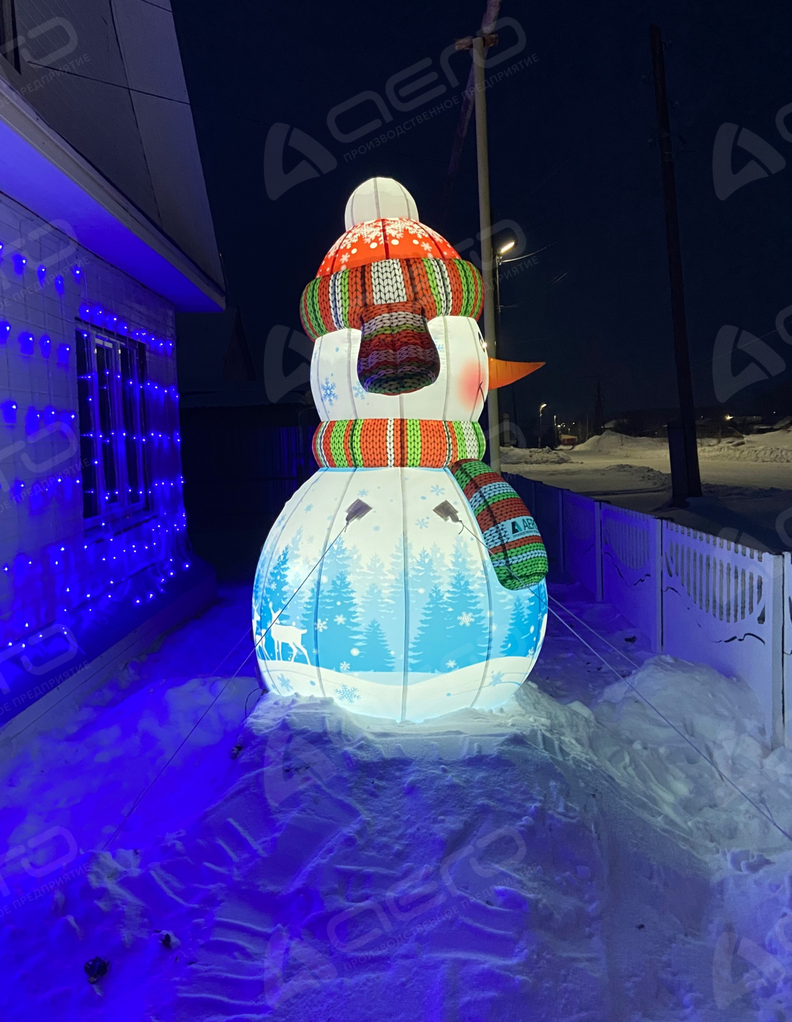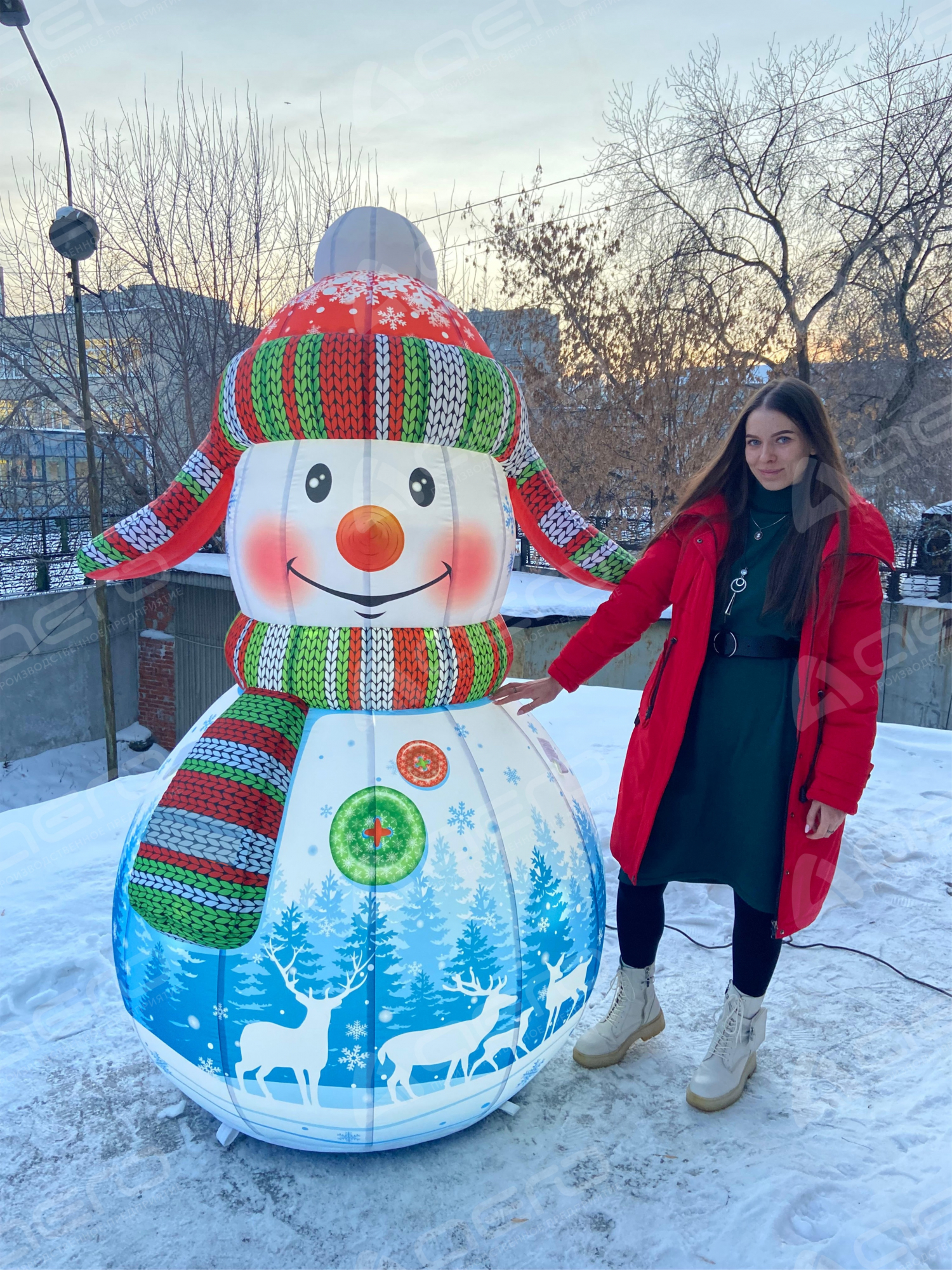 При создании дизайна наших надувных декораций мы уделяем особое внимание гармонии цветов и текстур. В нашем снежном дуэте преобладают мягкие белые и яркие оттенки, которые идеально подчеркивают красоту зимнего пейзажа, привлекая взгляды прохожих и поднимая им настроение.