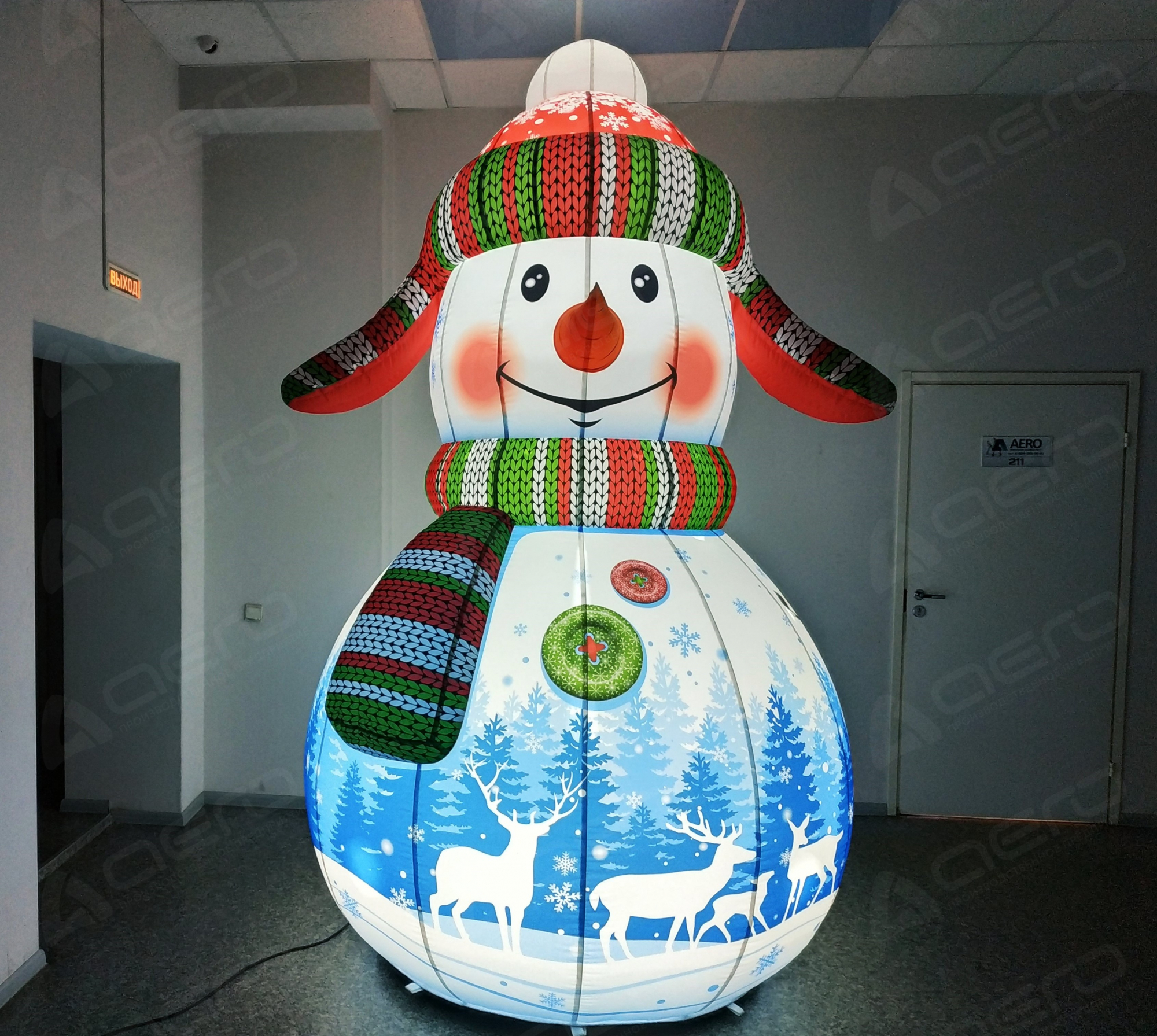 Надувная фигура Снеговик с оленями