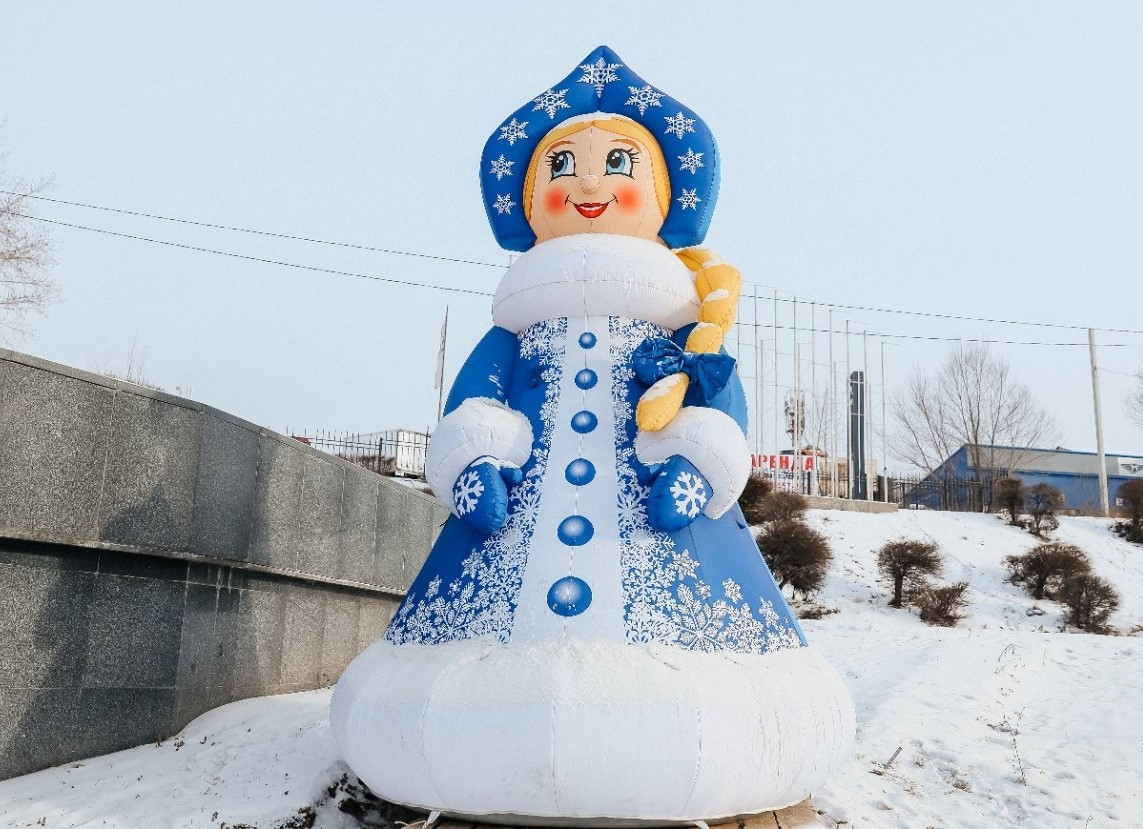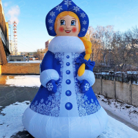 В комплекте с надувной Снегуркой отлично сочетается Дед Мороз бОльшего размера (например Дед Мороз 4 метра, а Снегурочка 3 метра). Высоту Снеговика (или любого другого новогоднего персонажа) можно подобрать на ваш выбор.