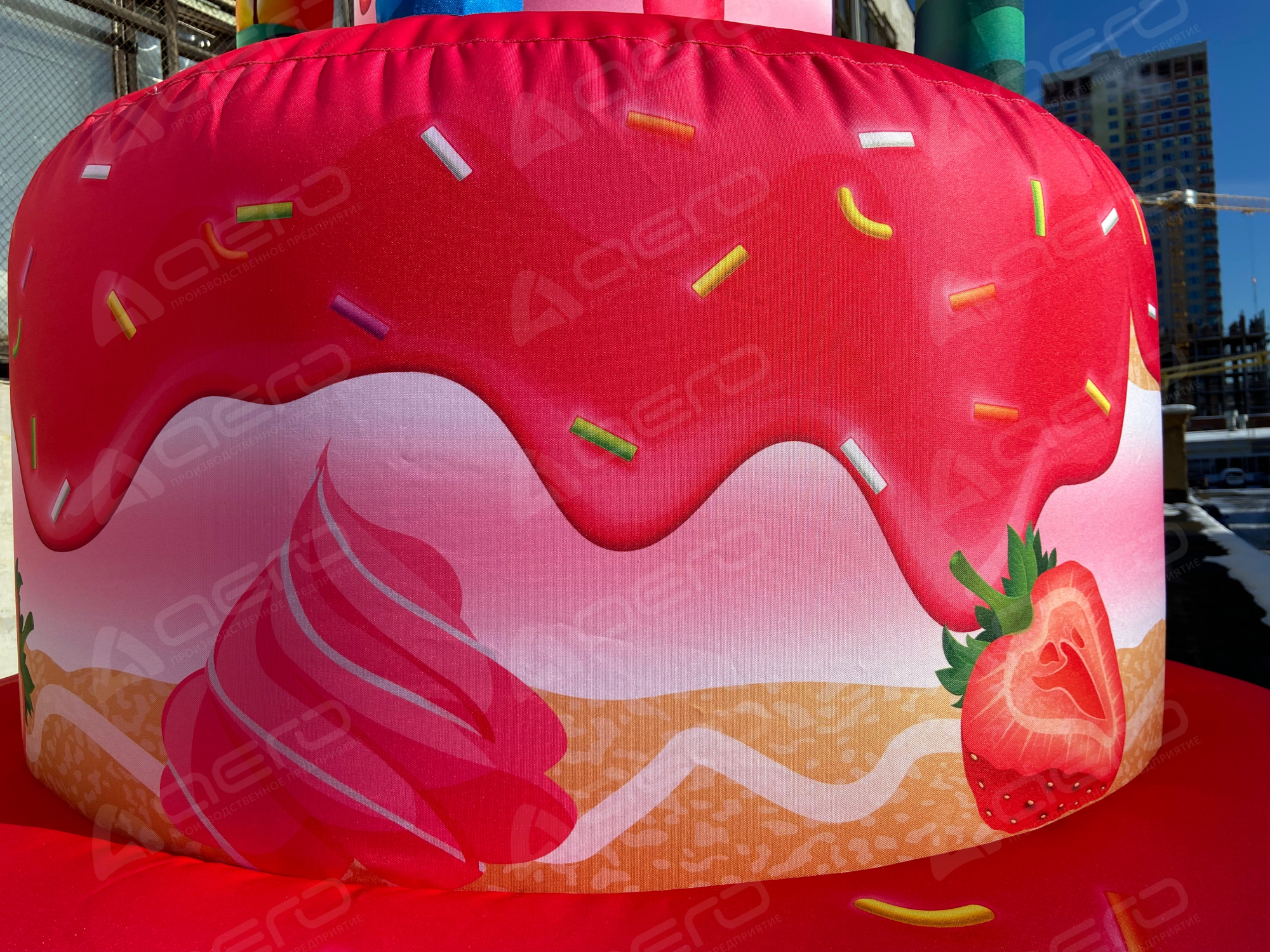 Яркую надувную фигуру "Торт" можно установить на детском празднике, юбилее, на открытии кондитерской, на крыше фабрики/магазина или же пронести на праздничном шествии!