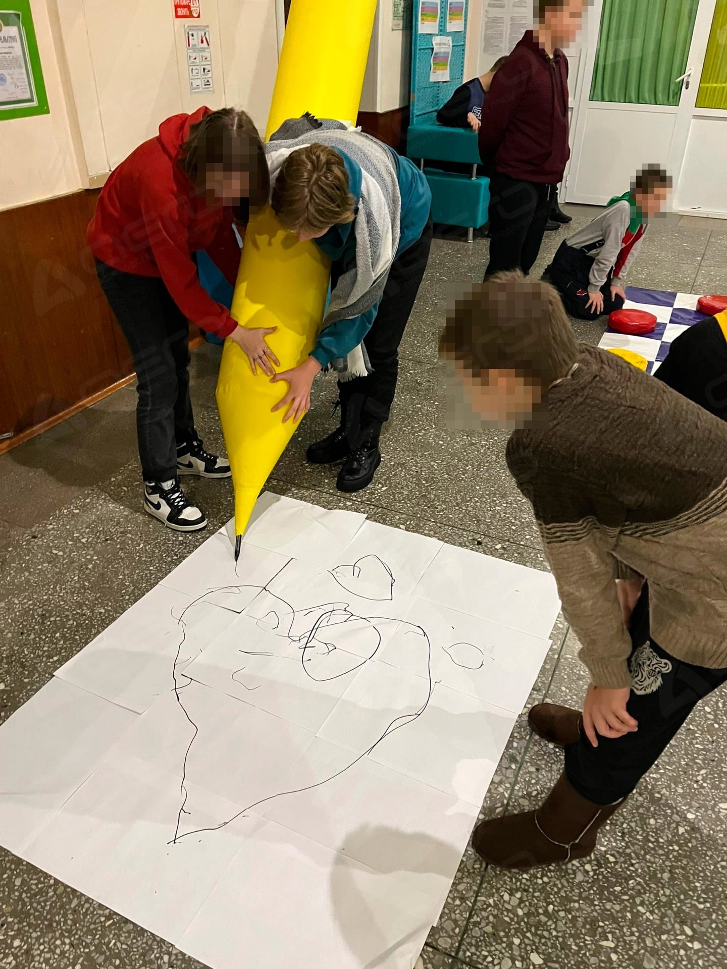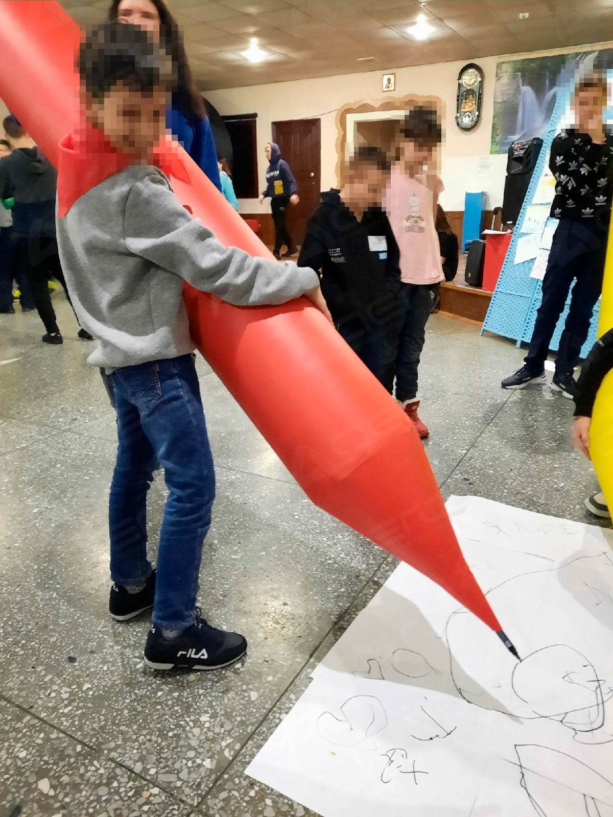 Задача участников – нарисовать изображение, написать фразу, цифры, и т.д. быстрее и лучше других, держа в руках карандаш, длиной 3 метра.