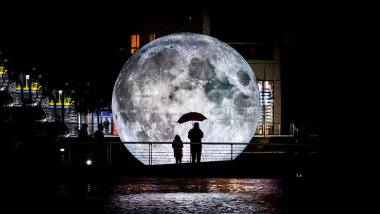 Оболочка надувной гигантской луны в сдутом виде не занимает много места.
