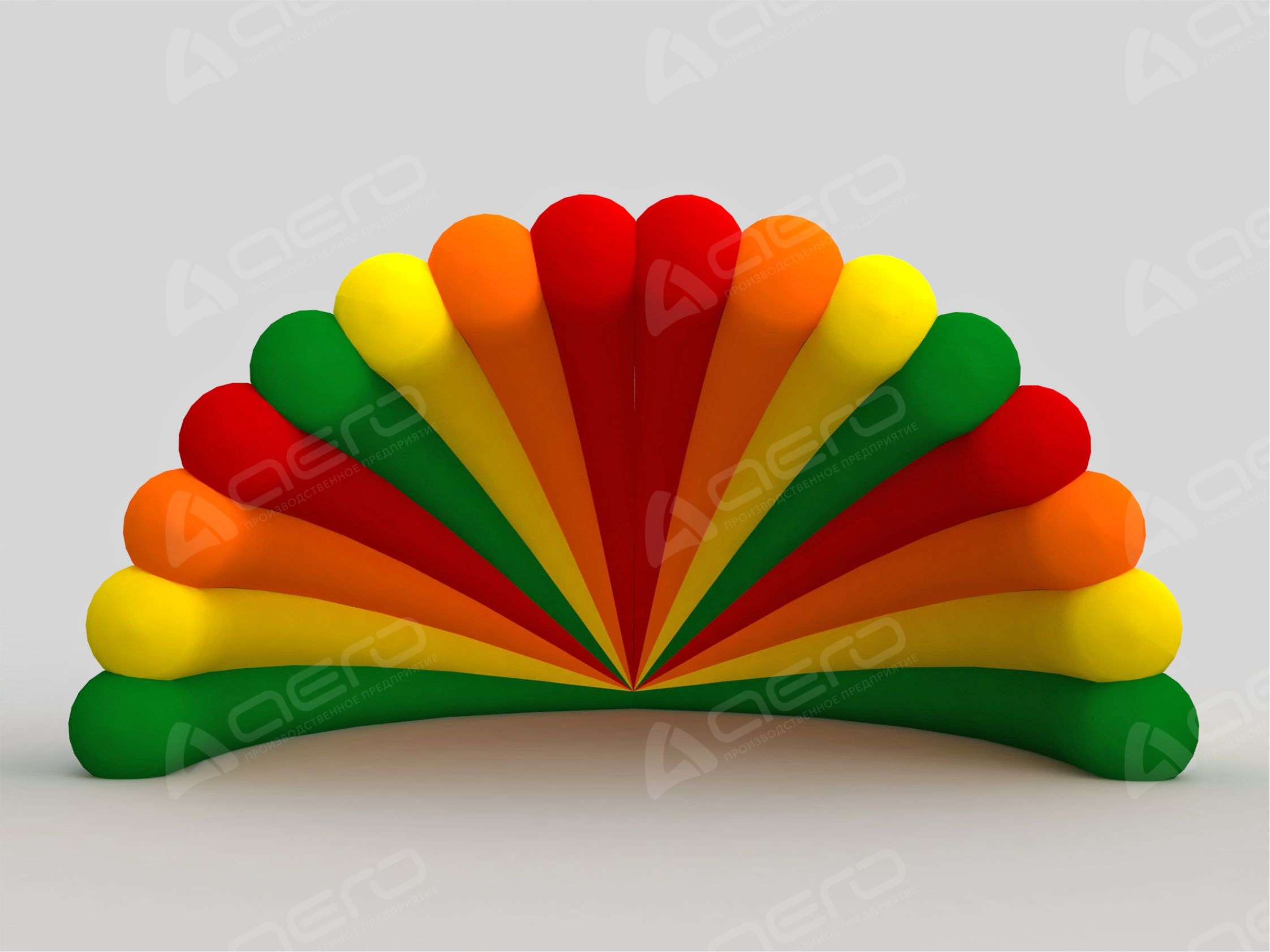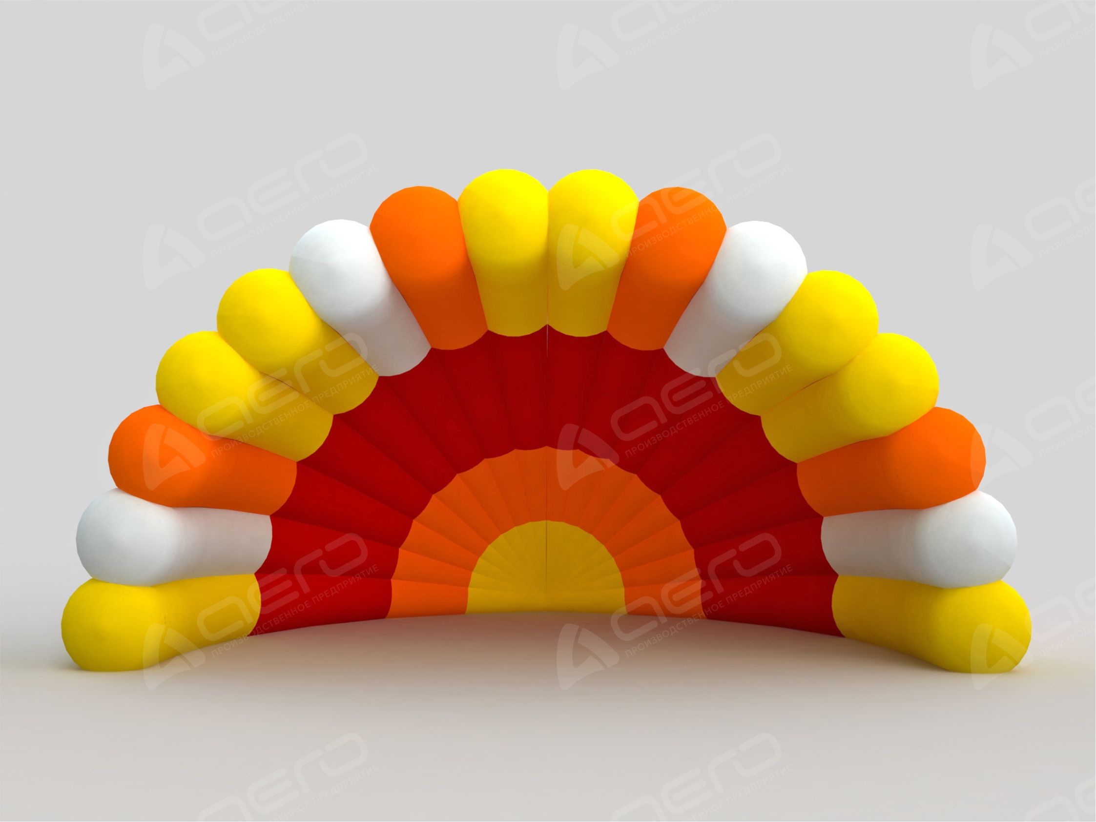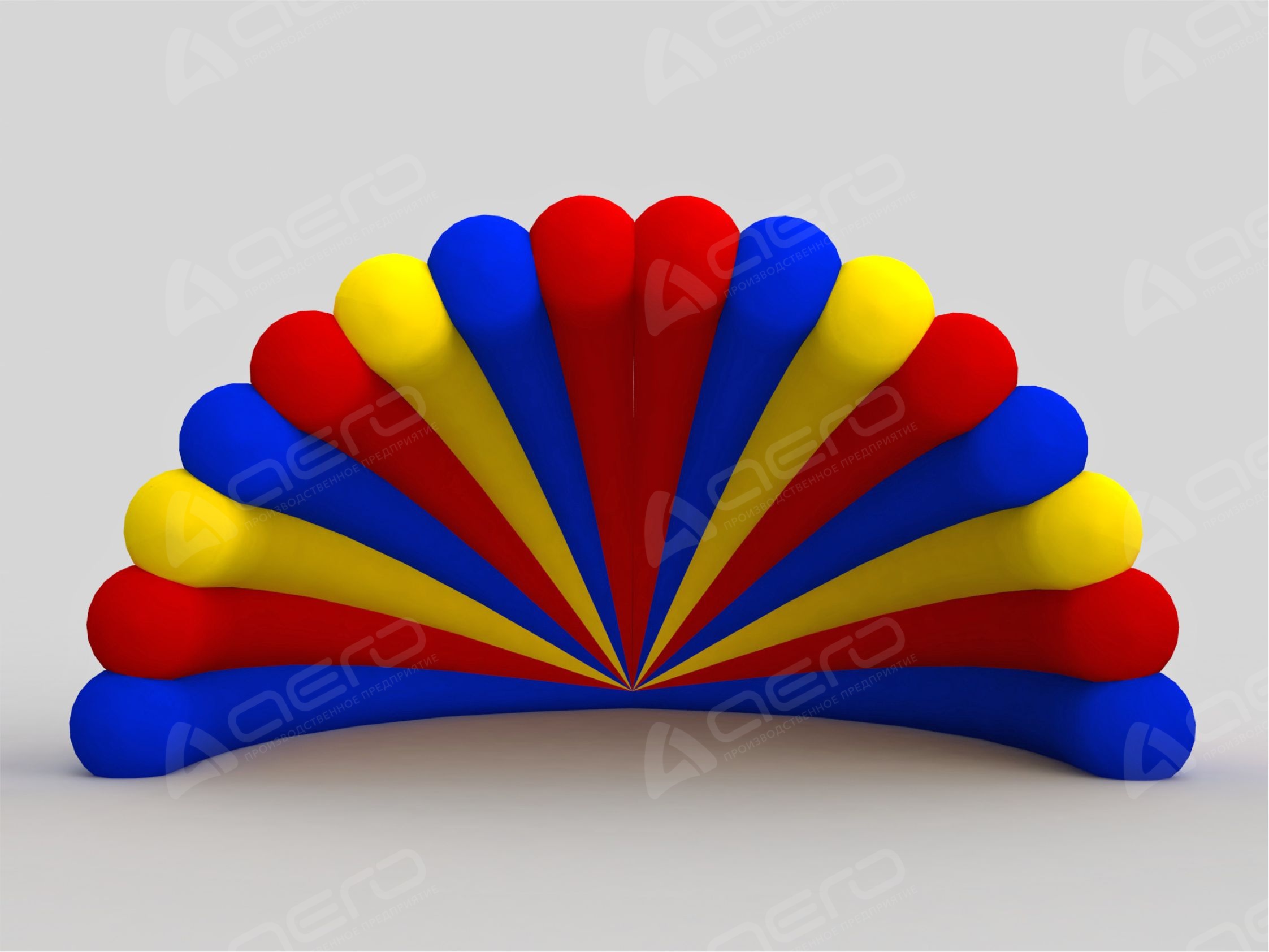 Представленные фото и макеты дают наглядно показать возможности нашего производства. Указанная стоимость надувной сцены "Веер" включает комбинацию заводских материалов различных оттенков (красный, жёлтый, белый, синий, зелёный и т.д.)