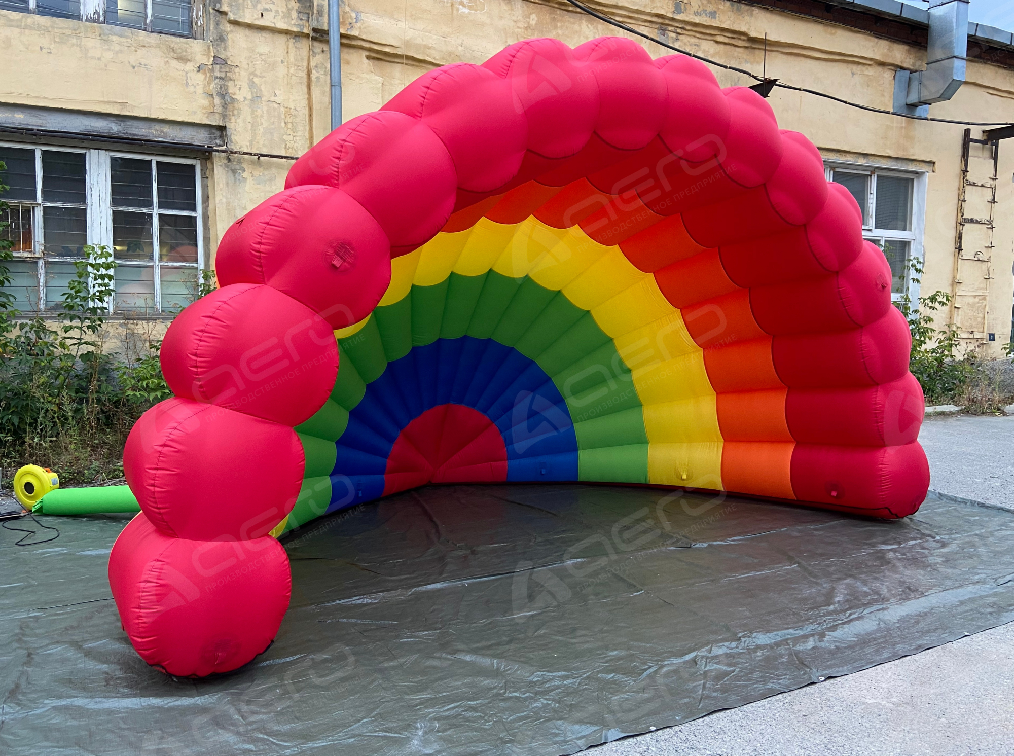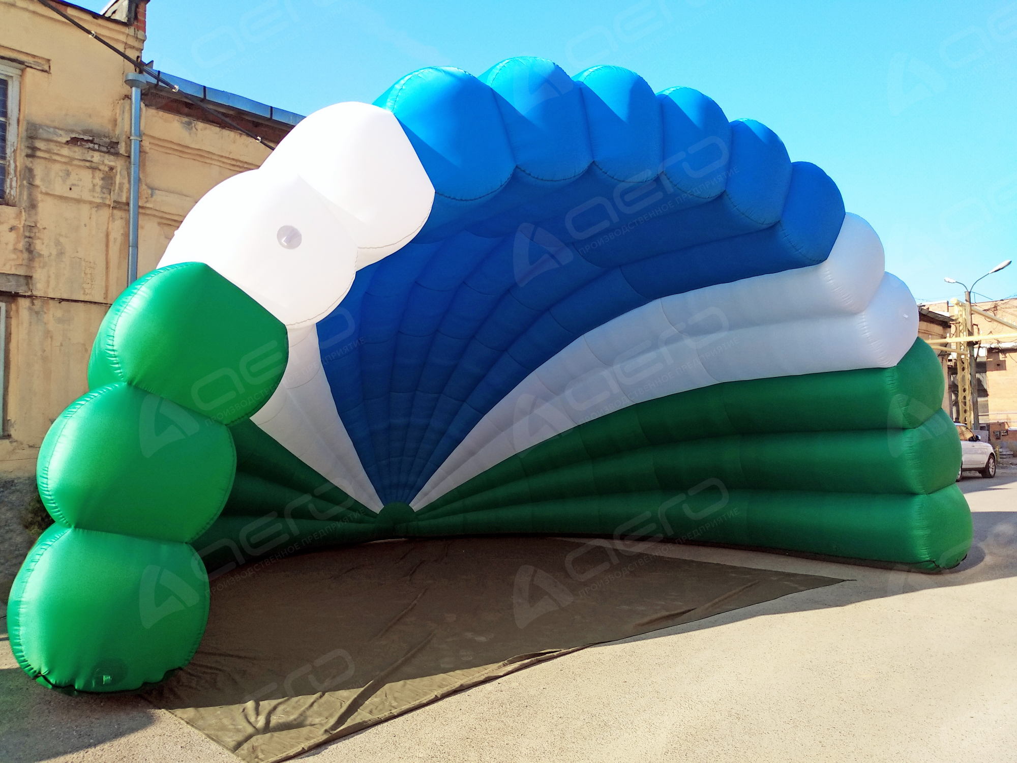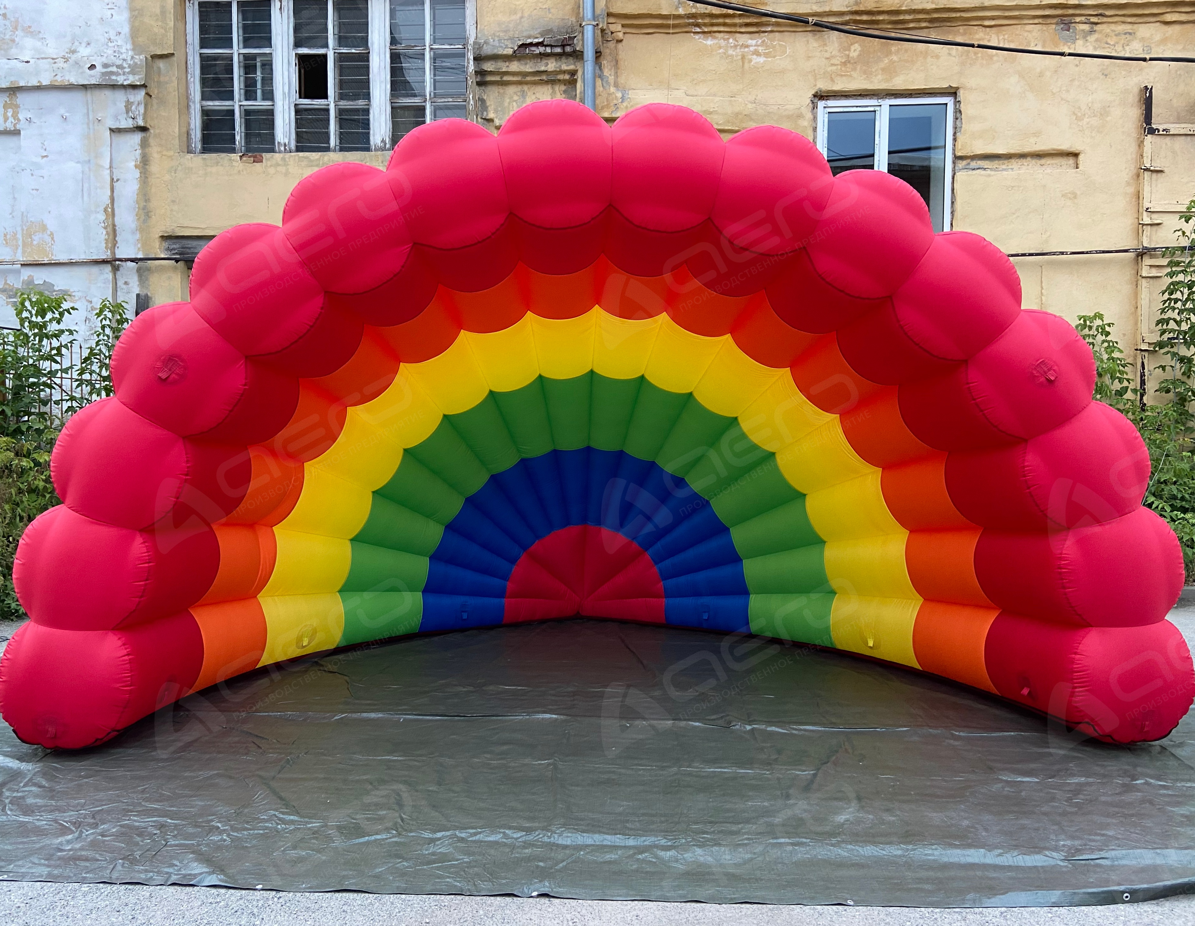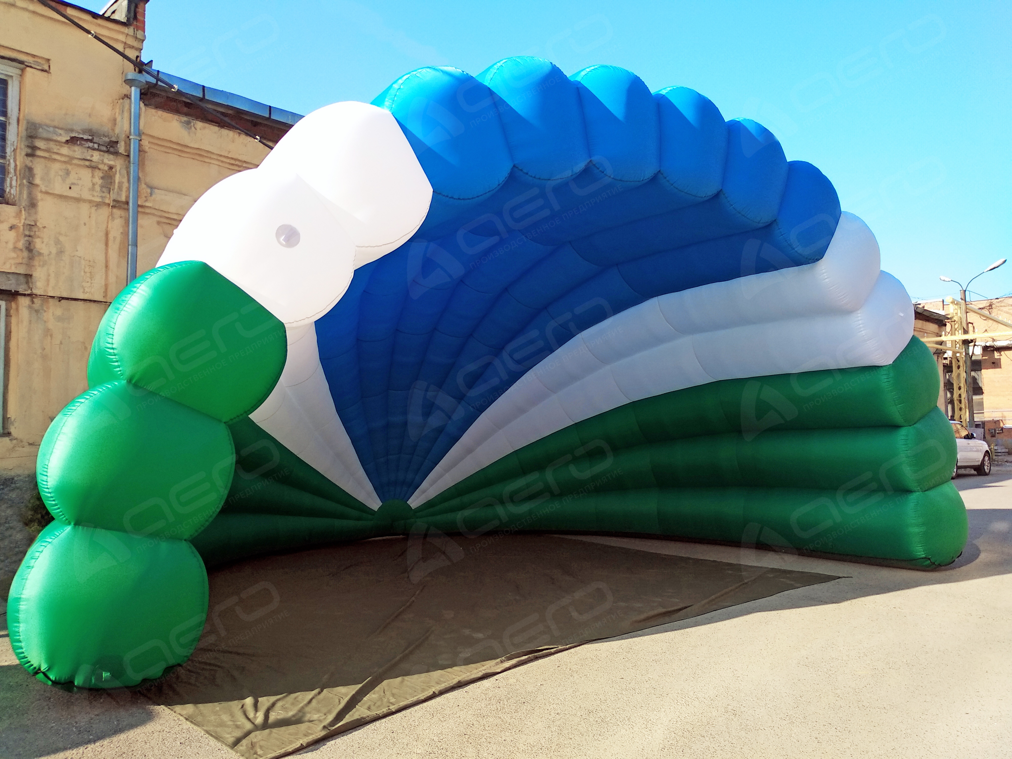 Представленные фото и макеты дают наглядно показать возможности нашего производства. Указанная стоимость надувной сцены "Веер" включает комбинацию заводских материалов различных оттенков (красный, жёлтый, белый, синий, зелёный и т.д.)