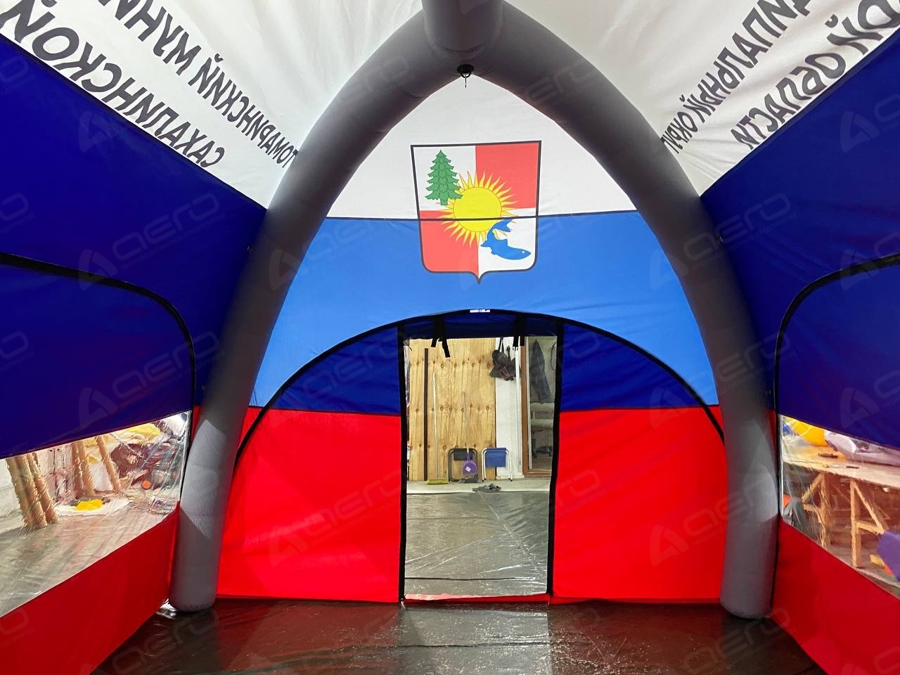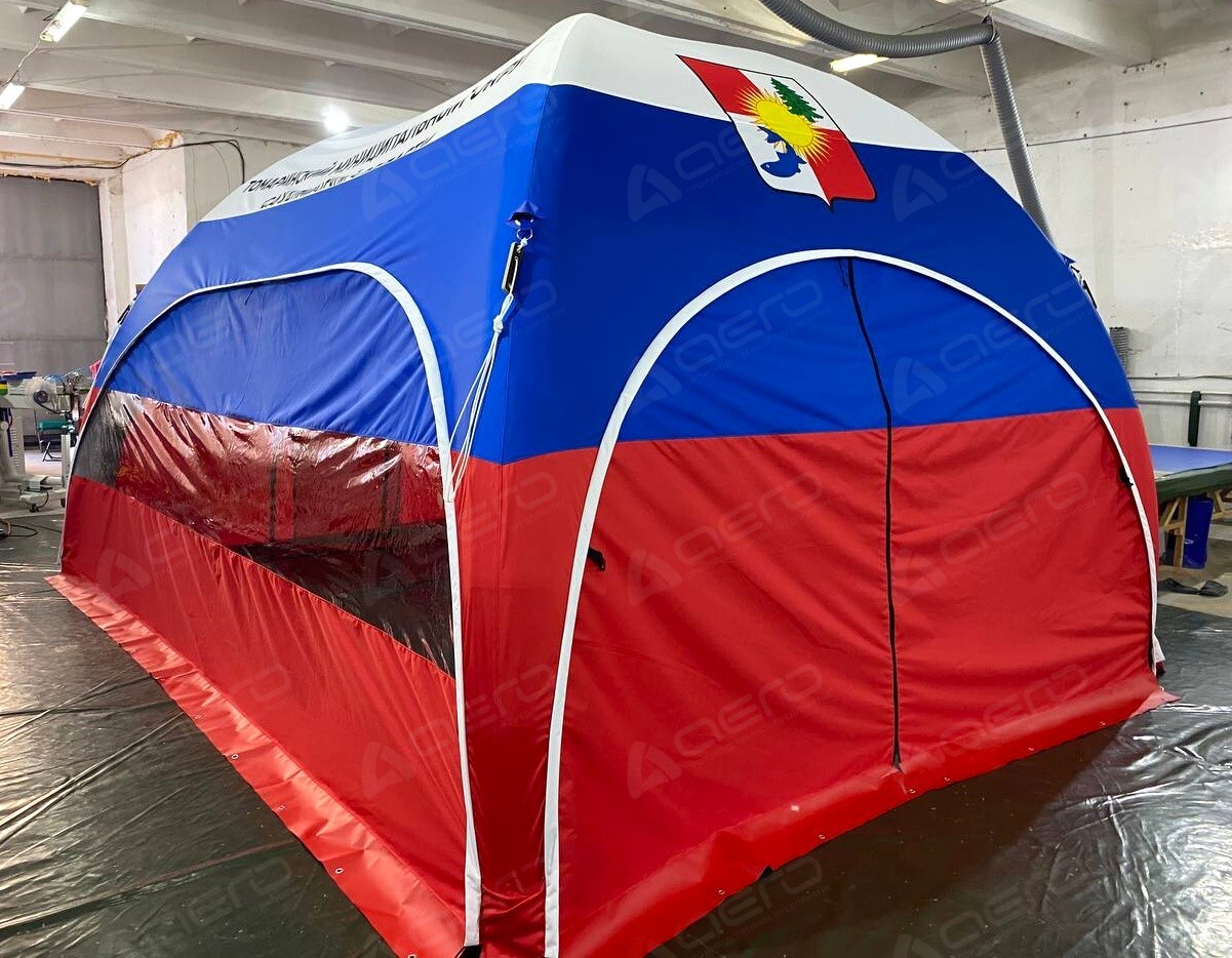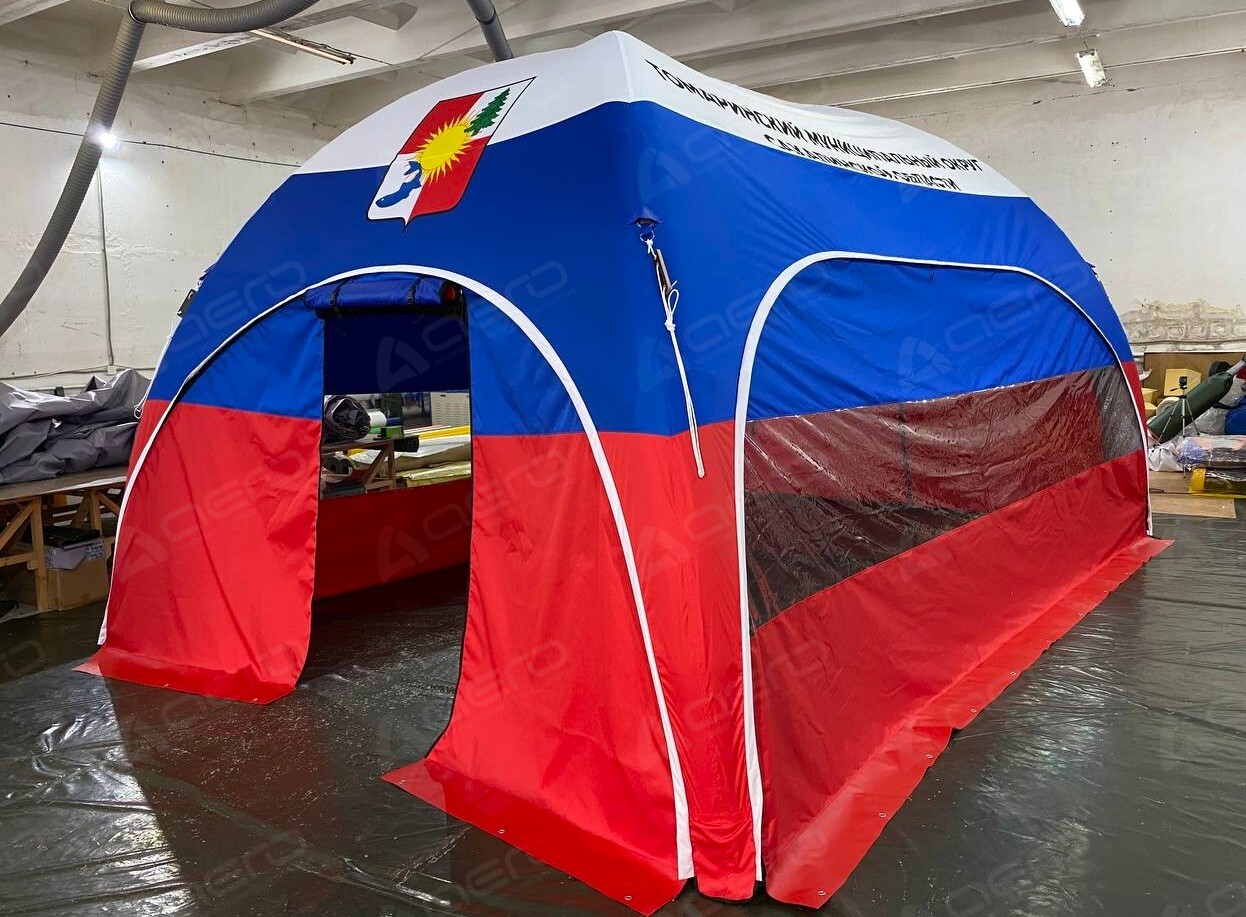 Надувной Прямоугольный шатёр в расцветке "Триколор" идеально подходит для установки на спортивных соревнованиях, для выставок и презентаций, в качестве мобильного пункта отбора на службу по контракту, для организации мобильного мед.центра и любых других назначений.