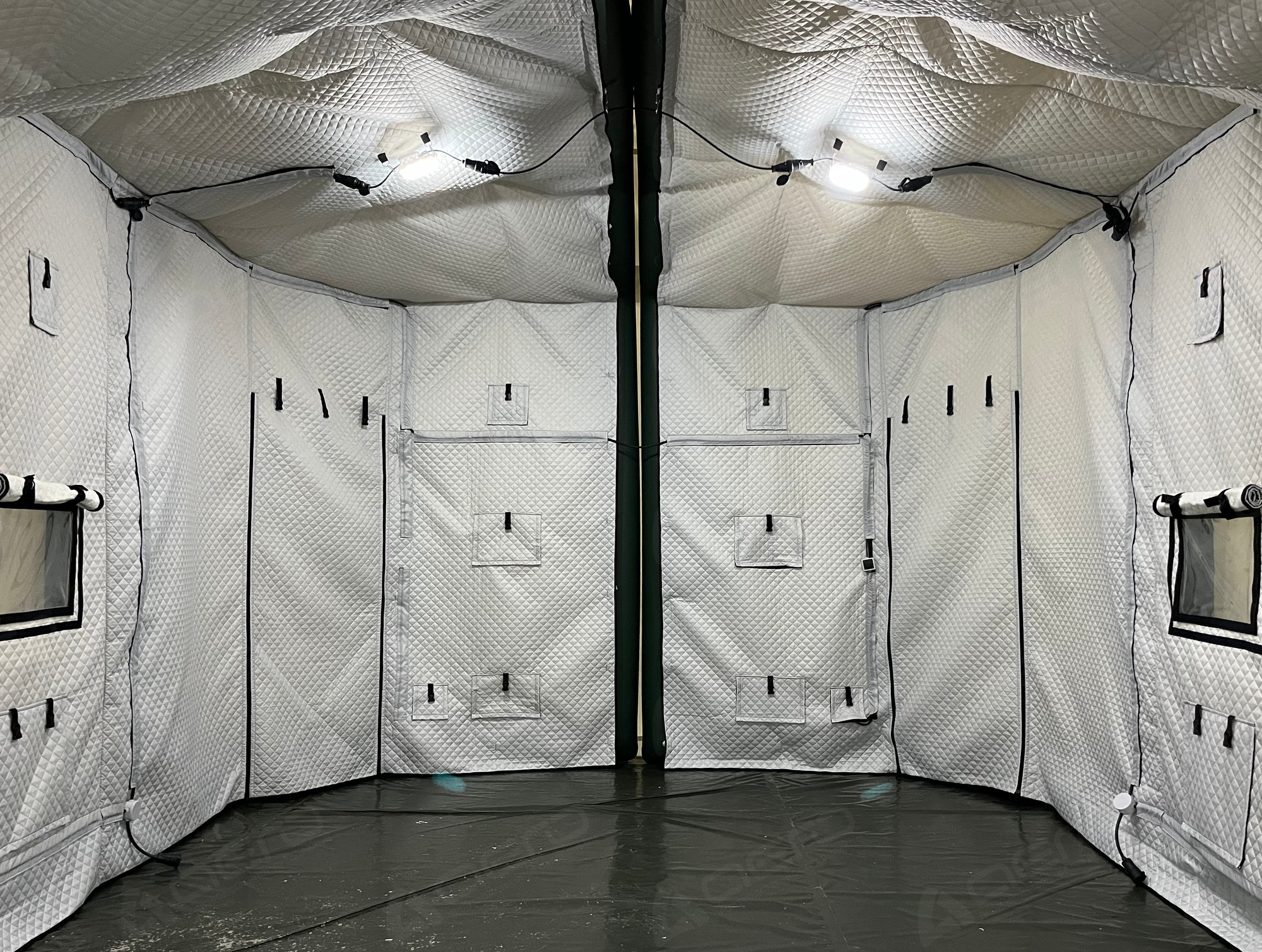 На внутреннем тенте предусмотрены крепления для кабелей электропитания в виде закрытых кабель-каналов из ткани, крепления для светодиодных светильников, а также дублирование технологических отверстий внешнего тента | 2 шт. |