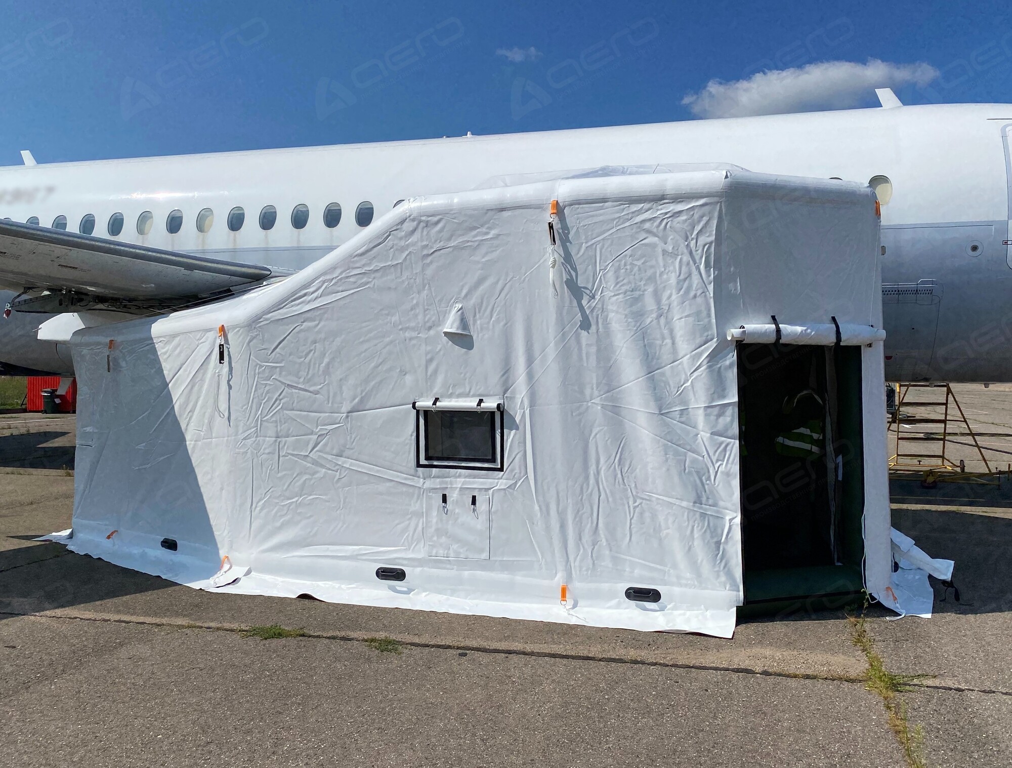 Надувное укрытие для ТО и ремонта силовых установок самолета типа Sukhoi Superjet 100 (RRJ-95)