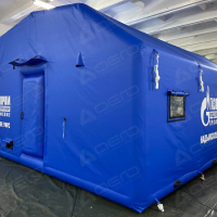 Выполнен из морозостойкой водонепроницаемой ПВХ ткани 630-650 г/м2. Тент несъёмный. С каждой стороны имеется крепёж для растяжек к грунту, для большей устойчивости на ветреной местности, а также ручки для переноса палатки в надутом виде. Слева от пневмодвери расположен информационный карман А4. |