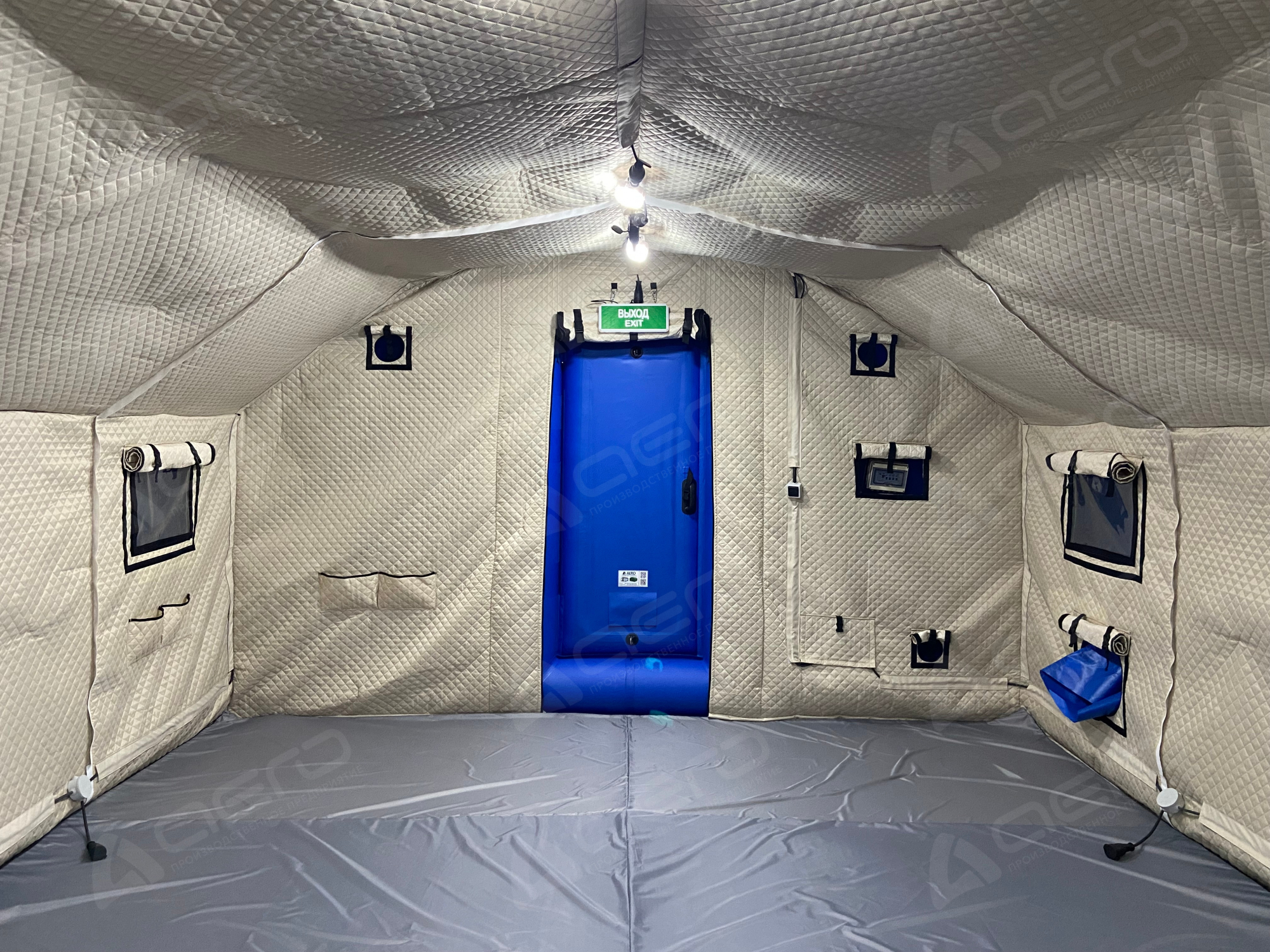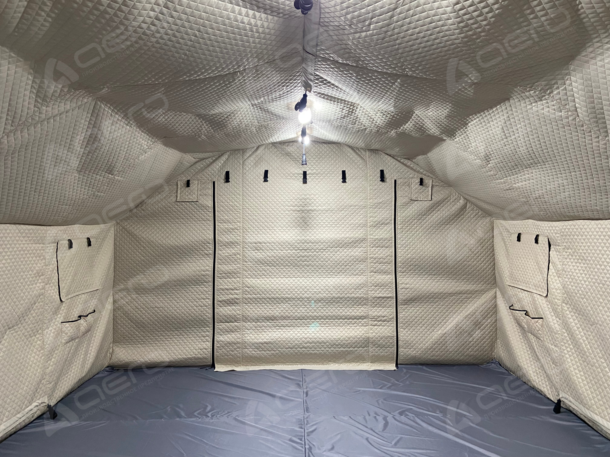 На внутреннем тенте предусмотрены крепления для кабелей электропитания в виде закрытых кабель-каналов из ткани, крепления для светодиодных светильников, а также дублирование технологических отверстий внешнего тента | 1 шт. |