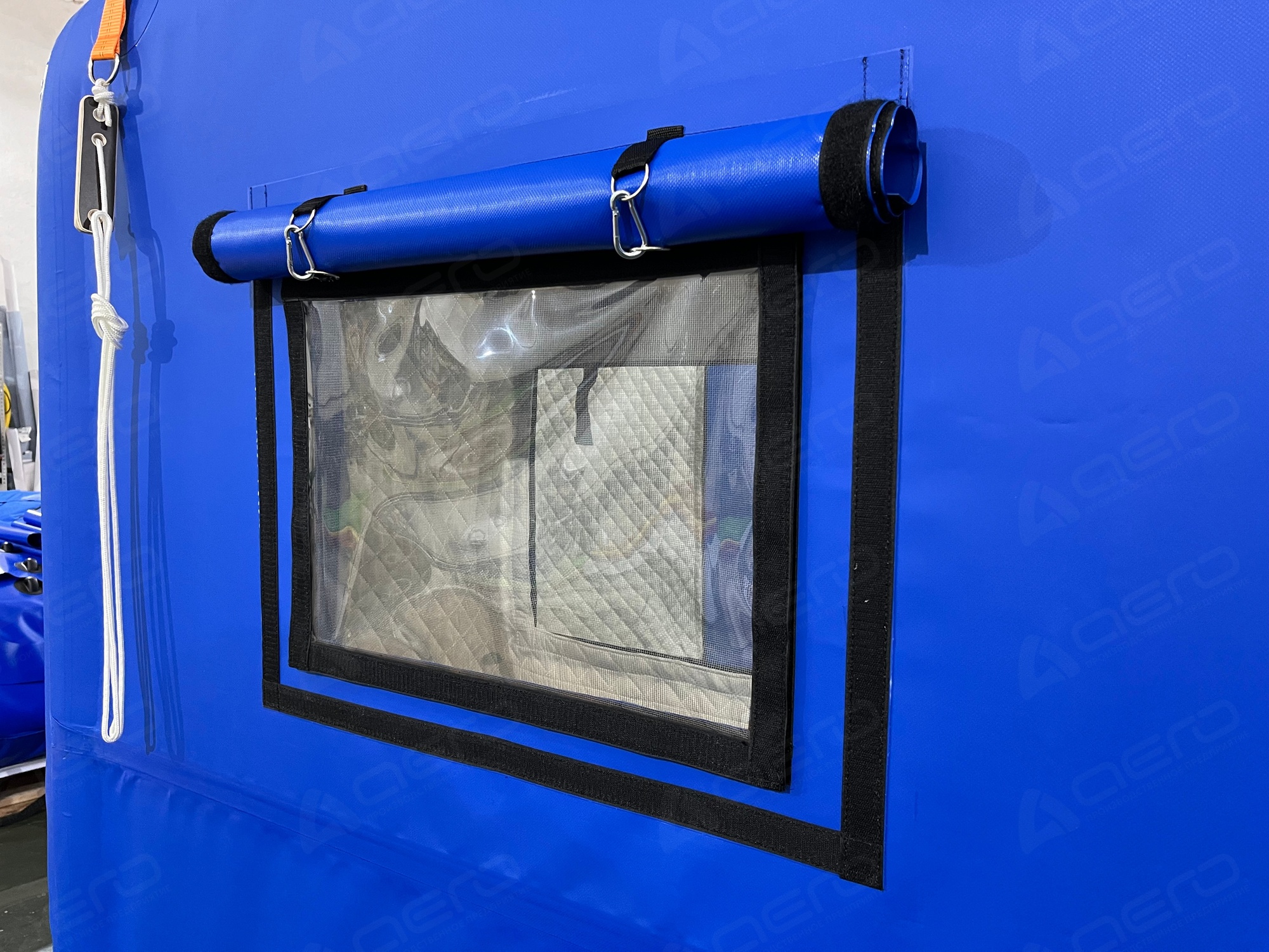| Герметичная пневмодверь 1,8м.х0,8м. | Имеет надувной каркас и отдельный клапан для надува. Внутренняя и внешняя сторона двери выполнены из материала внешнего тента. Фиксируется в открытом положении, а также в закрытом при помощи застёжки фастекс. |