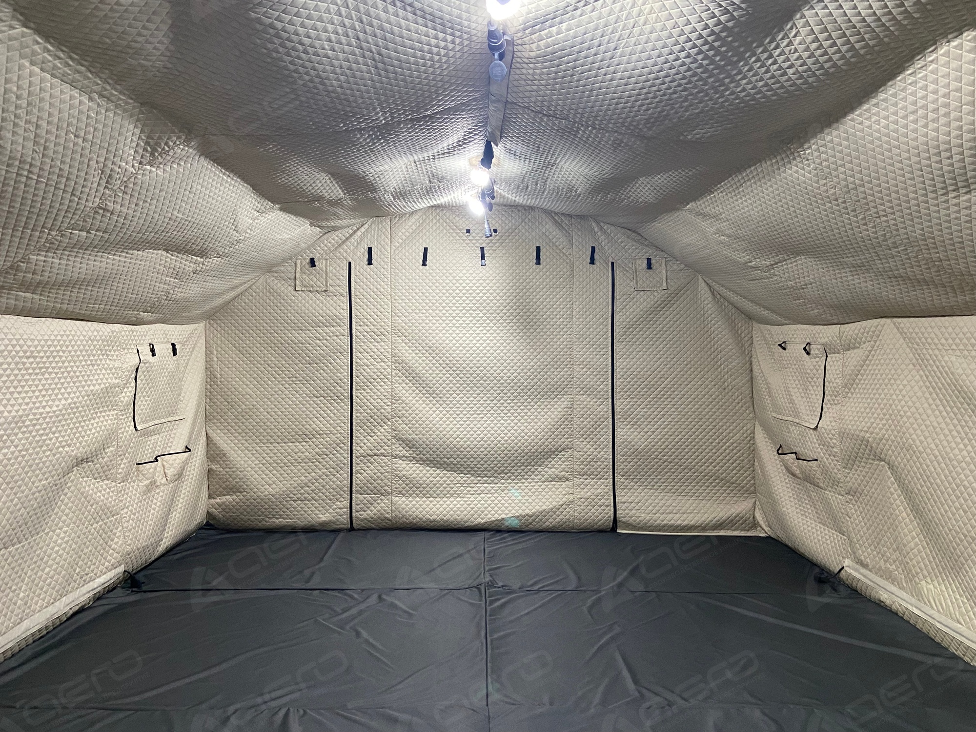 Надувной модуль выполнен из морозостойких материалов, которые позволяют использовать палатку даже в самые суровые морозы и неблагоприятные погодные условия (до -50 градусов)