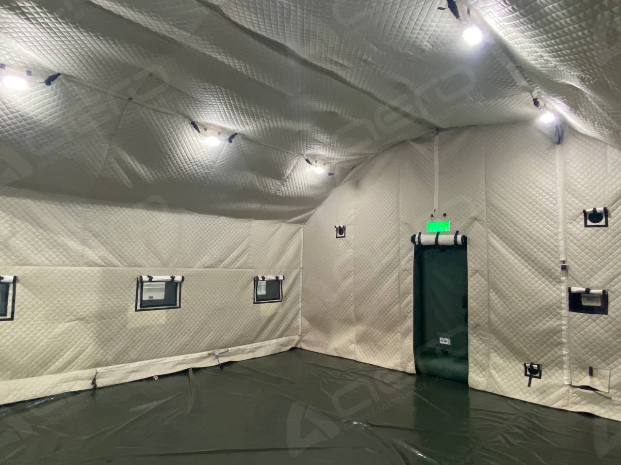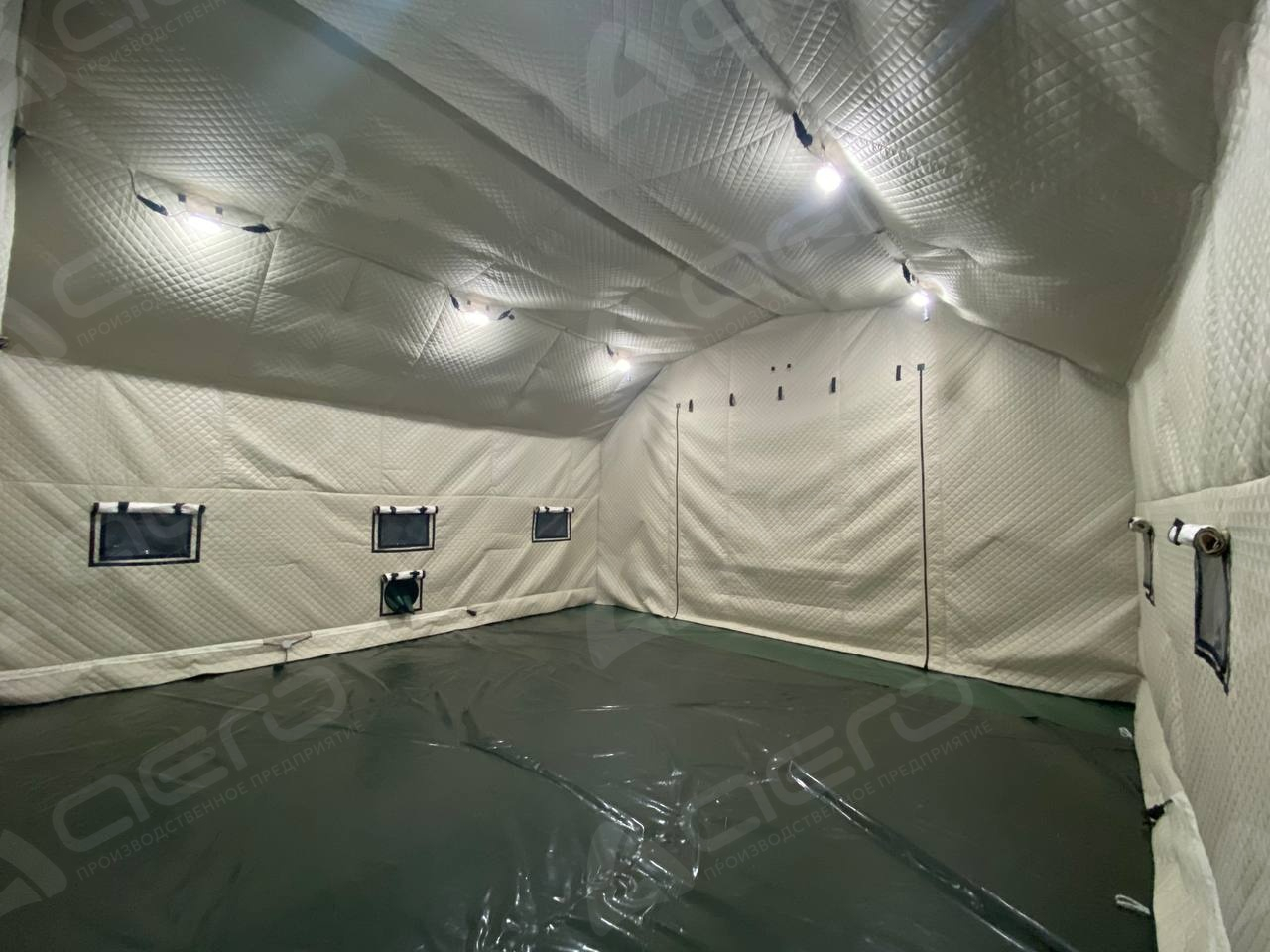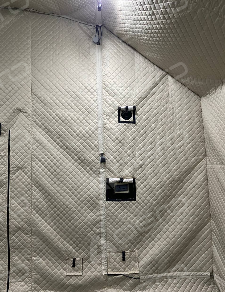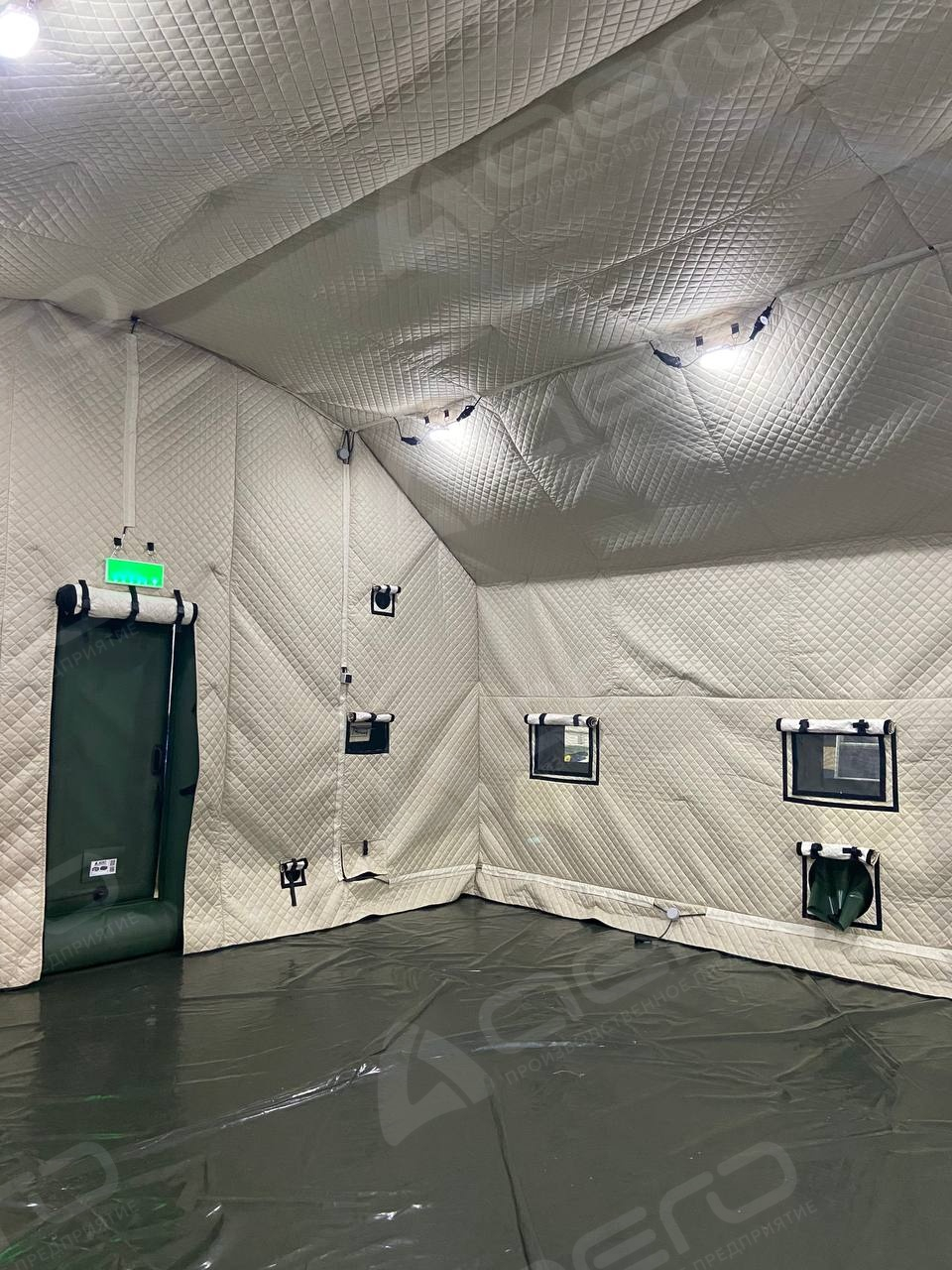 На внутреннем тенте предусмотрены крепления для кабелей электропитания в виде закрытых кабель-каналов из ткани, крепления для светодиодных светильников, а также дублирование технологических отверстий внешнего тента |