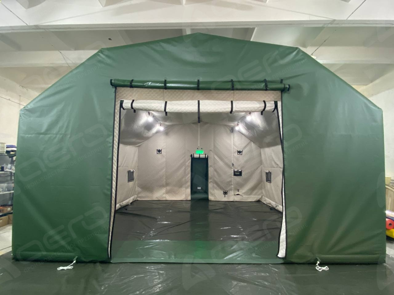 Имеет надувной каркас и отдельный клапан для надува. Размер двери 1,8м.х0,8м. Внутренняя и внешняя сторона двери выполнены из материала внешнего тента. Фиксируется в открытом положении, а также в закрытом при помощи застёжки фастекс.
